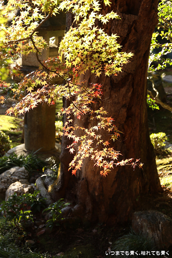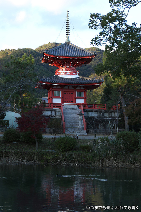 愛宕念仏寺から次に向かったのは旧嵯峨御所である大本山大覚寺。嵐山は何度も来ていますが、大覚寺を訪れるのは初めてです。嵯峨天皇のお寺で広大な建物と敷地、厳かな品のある雰囲気がとても心を落ち着けてくれます。いろんな時代劇やドラマのロケ地でもあり、私にとってはその場所に立つことも楽しい目的のひとつだったりします。拝観しながら、「♪きょうとぉ〜 らんざん だいかくじ〜 ♪こい〜につかれた おんなが〜 ひとりぃ〜」 とつい口ずさんでいる私でした。紅葉は大覚寺もイマイチ。夜のライトアップはそれを補って美しいと蕎麦屋のおかみさんから聞きましたが、あまり絵になりそうにも感じませんでしたのでライトアップはご遠慮して戻ってきました。