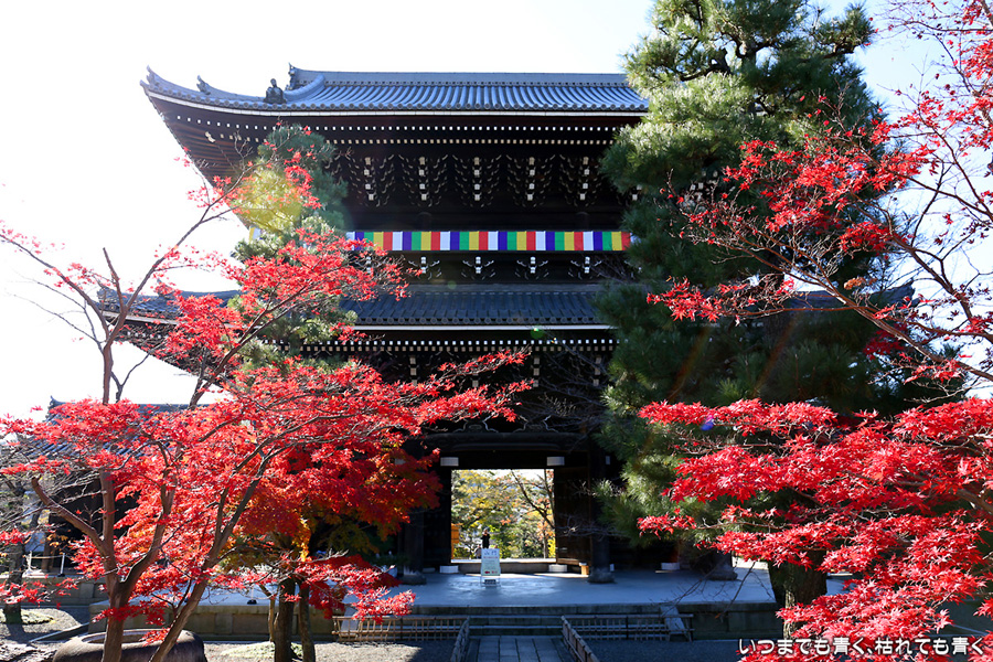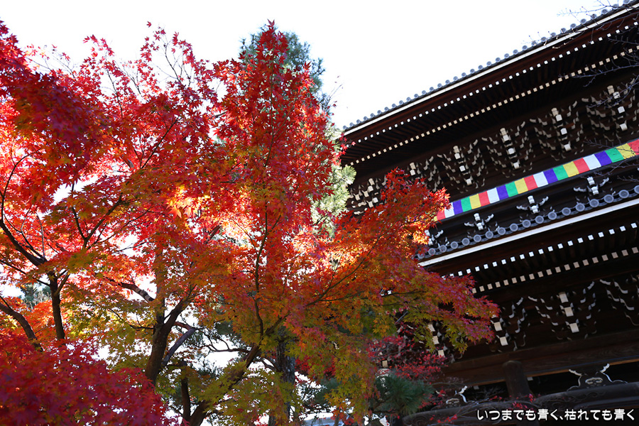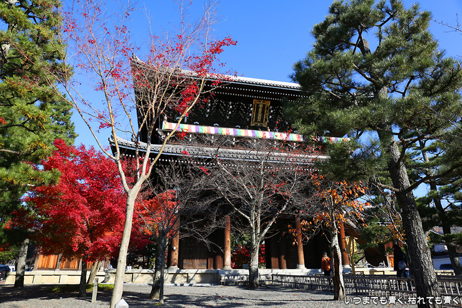 秋の京都ぶらり旅、二日目。今回は、紅葉有名どころの南禅寺や永観堂や東福寺、嵐山はさけての旅のつもりなので、くろ谷さんも、今回は時間の関係で庭園拝観はせずに素通りです。山門周りの紅葉の撮影にとどめました。