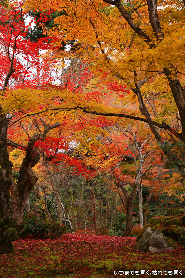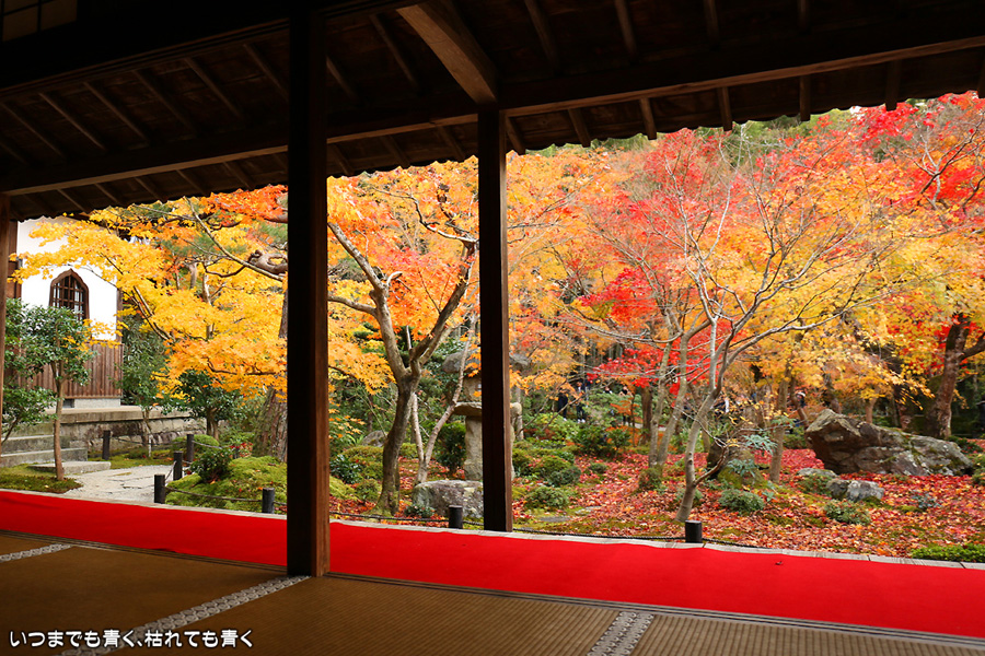 ここの紅葉と雰囲気は思っていた以上に素晴らしく趣がありました。書院から眺める十牛之庭の紅葉は最高でした。立ち去るのが惜しい気持ちになって予定よりもかなり長居をしてしまいました。なので、次に予定していた赤山禅院はあらためて訪れることにしました。