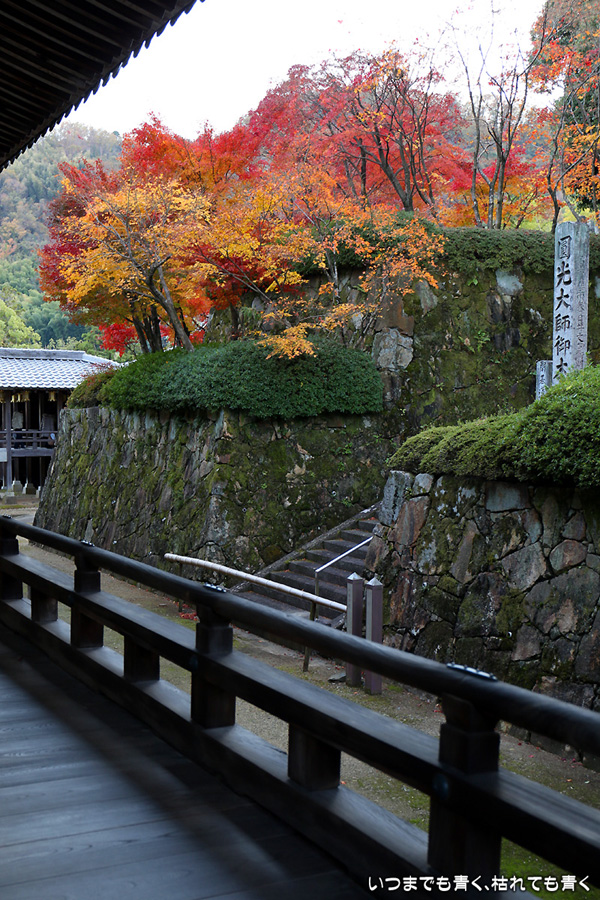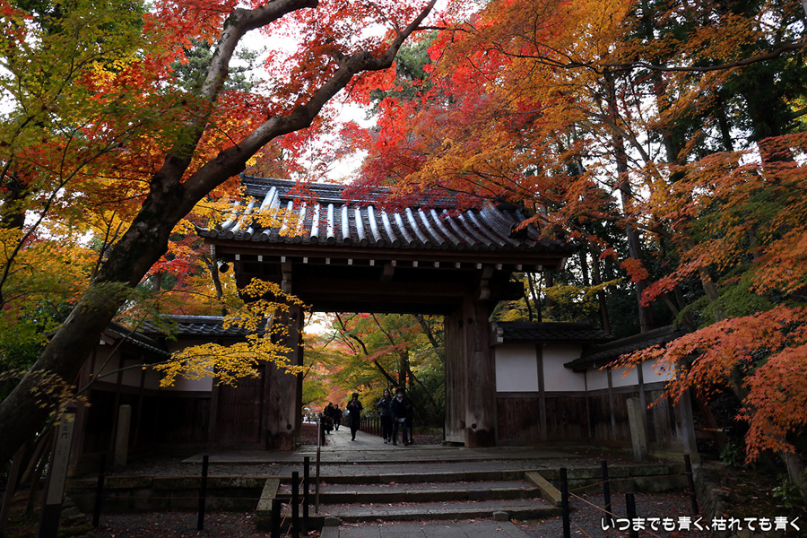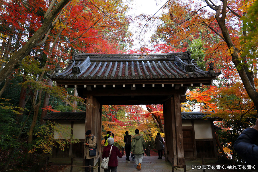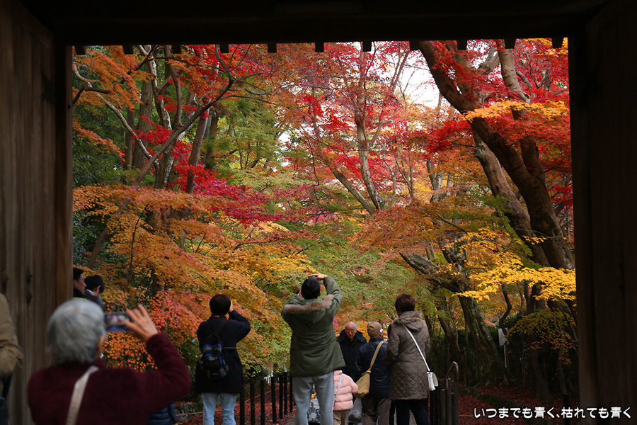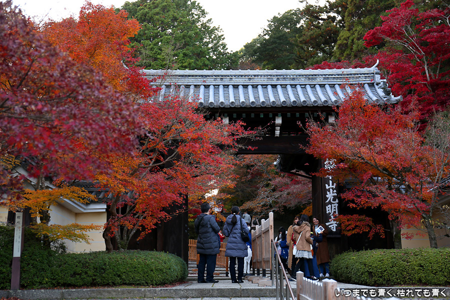 長岡京光明寺に着いたのが閉門近くだったため、あわただしい拝観となってしまいました。紅葉の参道が美しかったのですが、構図を決めて写真を撮る余裕もなく、夕方で光量も不足気味でせっかく来たのに残念でした。最後は追い出しおじさんに追い出されてしまいました。閉門時間だからと言って、参拝者たちに「早く出ていけ」、「もうカメラのシャッターは押すな」、「ゆっくり見たいならもっと早く来い」(口調のまま)という言葉は無いよなと思ってしまいました。紅葉は美しいけど、遠くから来た観光客に対して配慮のない上から目線のお寺でした。