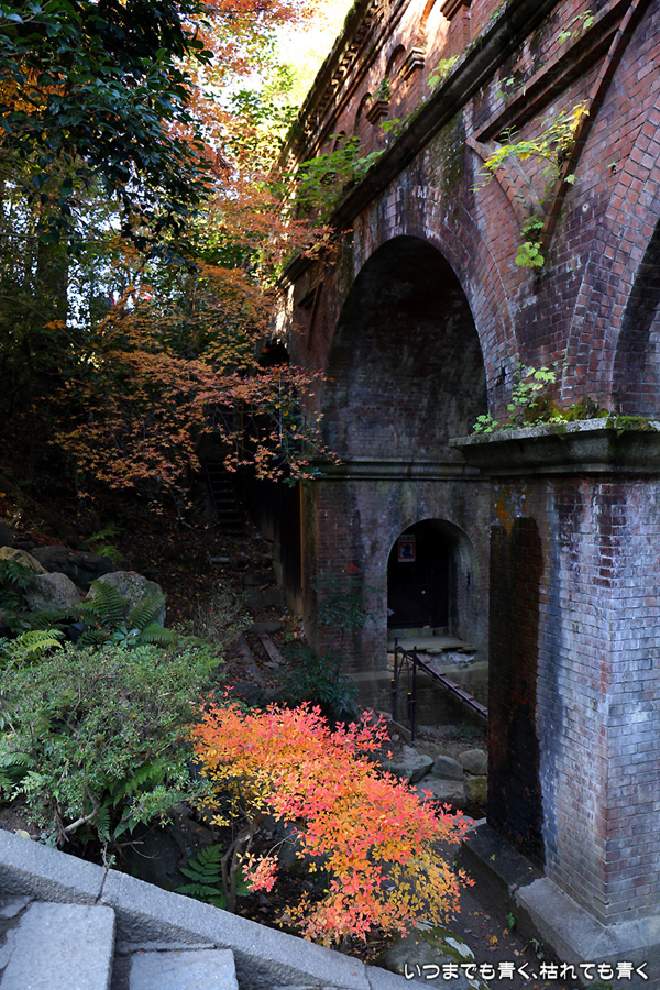 紅葉真っ盛りの時期ならば、水路閣と周辺の紅葉とがよく似合うのですが、今回はすでに水路閣周辺に美しい紅葉はなく寂しい情景でした。