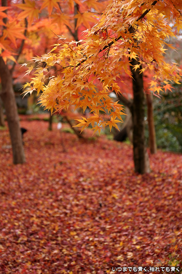 秋は拝観料が高いこと、人が多いこと、あまりにも定番であることで、永観堂は避けようと思っていたのですが、前を通ると紅葉の美しさに引き込まれて拝観してしまいました。枝に残る紅葉と落ちた紅葉のバランスがよくて、どこも美しかったです。必然的に写真の枚数も多くなってしまいました。