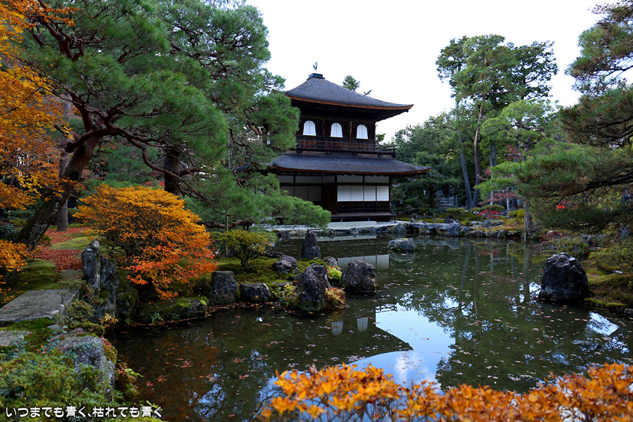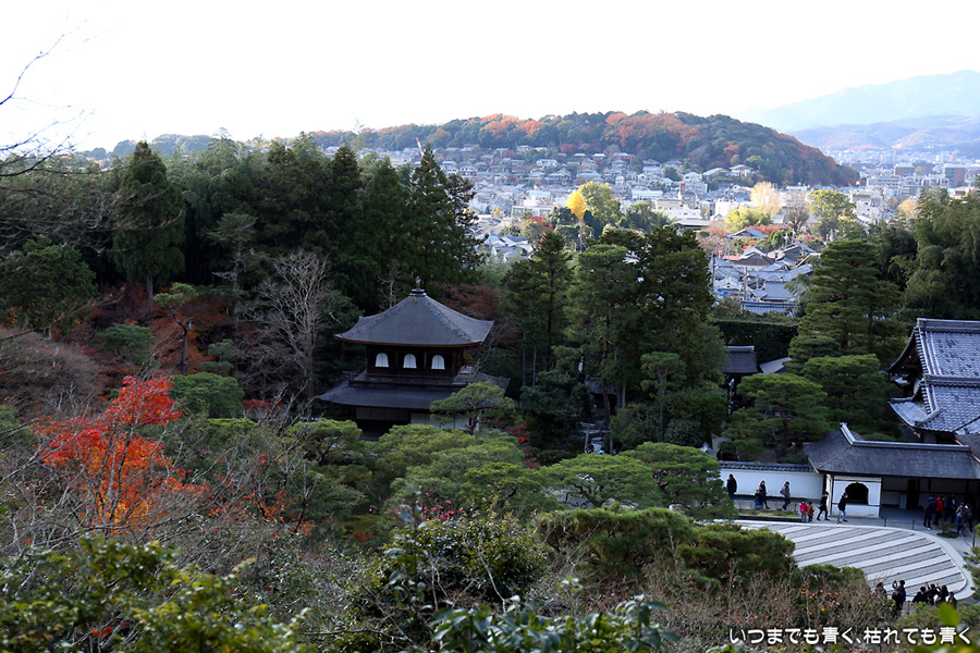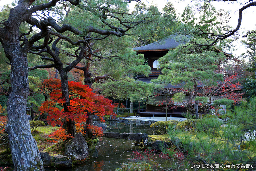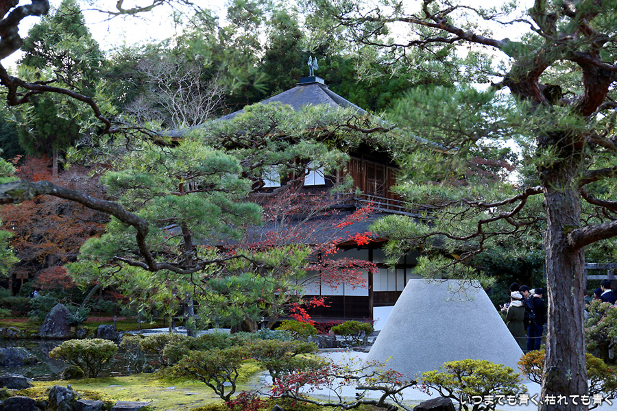 銀閣(観音殿)自体は地味な建物ですが、庭園と合わせて見ると、個人的には撮影ポイントが限られる金閣寺よりも絵になる情景が多いように思います。紅葉は時期的にそれほどでもなかったですが、初めての銀閣寺は思ったよりは好印象でした。