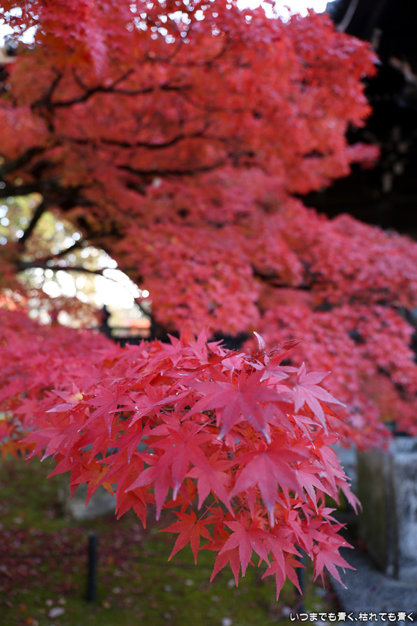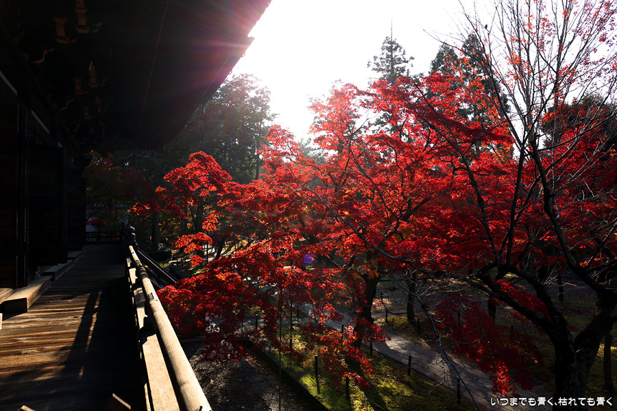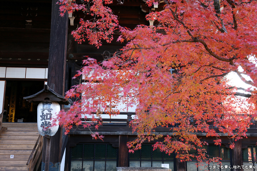 最近はクルマを金戒光明寺の駐車場に置くことが多いので、近くにある真如堂に訪れることも多くなります。朝日の差し込む真如堂の紅葉は色が映えて素晴らしく素敵でした。写真は、その朝日の扱いが難しくて逆光で写すと色に陰が目立つのがまだ撮影技術の未熟なところです。