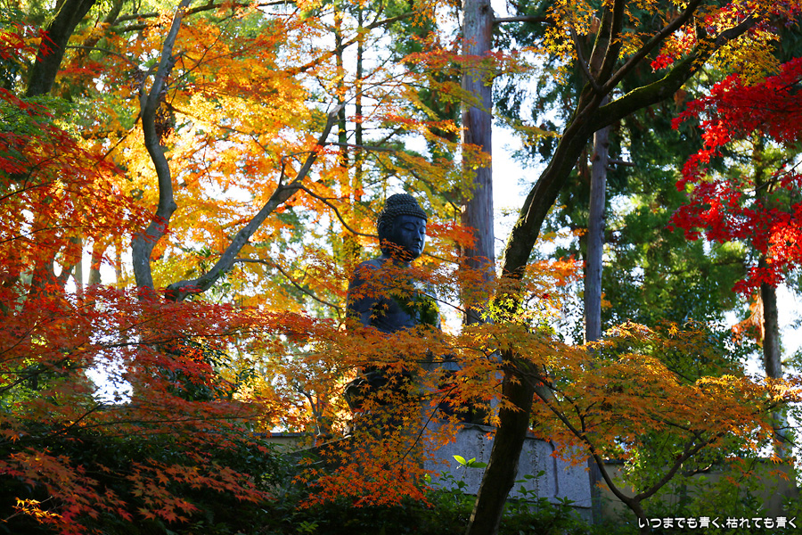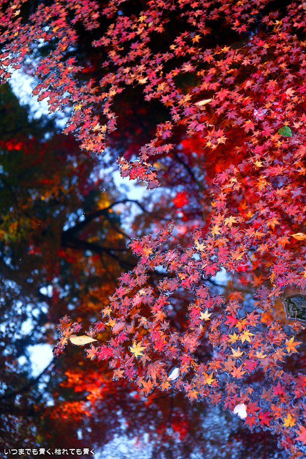 真如堂を出たところで年配の男性に「栄摂院の紅葉と池に浮かぶ落葉がきれいでしたよ。ぜひ行ってみてください」と声をかけられたので、金戒光明寺の方に少し戻って初めて栄摂院を訪れてみました。昨年も真如堂で「霊鑑寺の紅葉が素敵でしたよ」と年配の女性に教えてもらったので、真如堂では不思議な縁をいただけます。栄摂院は金戒光明寺の塔頭でこじんまりしたお寺ですが、縁側に座って眺める庭と紅葉は本当に美しく静かで落ち着く場所です。