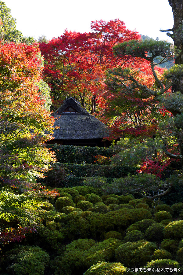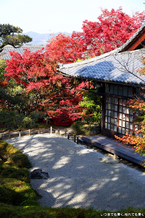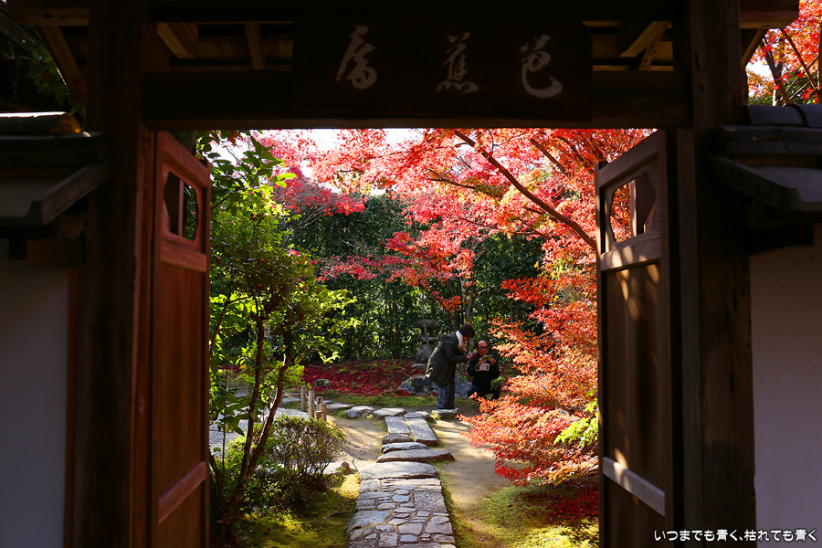 このお寺には与謝蕪村の墓があり、松尾芭蕉も滞在したといわれています。庭園の奥の芭蕉庵と紅葉、落葉の絨毯が印象的でした。紅葉の穴場的なところです。