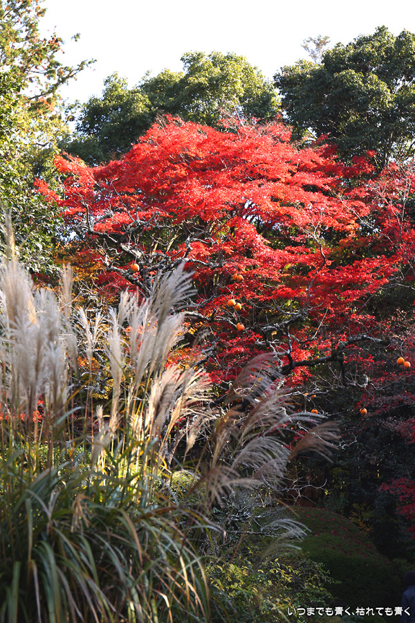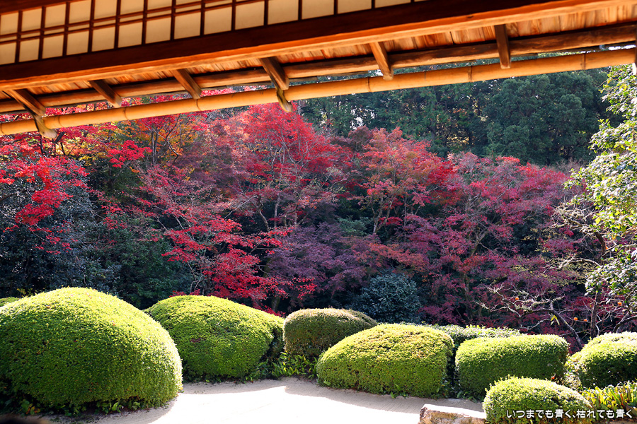 ここは昨年も訪れましたが、縁側から眺める庭園と紅葉何度きても見飽きることがありません。人気があるのも頷けます。縁側に座ってのんびりと庭と紅葉を眺めていたいのですが、さすがに人が多くてのんびりというわけにはいかないですし、次の紅葉の名所へいく時間もありますので、それがちょっと残念なところです。