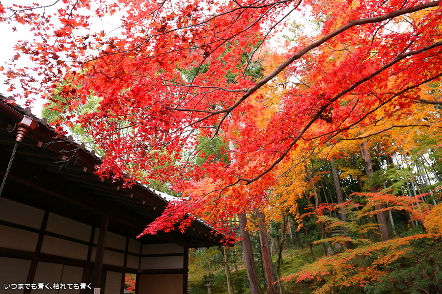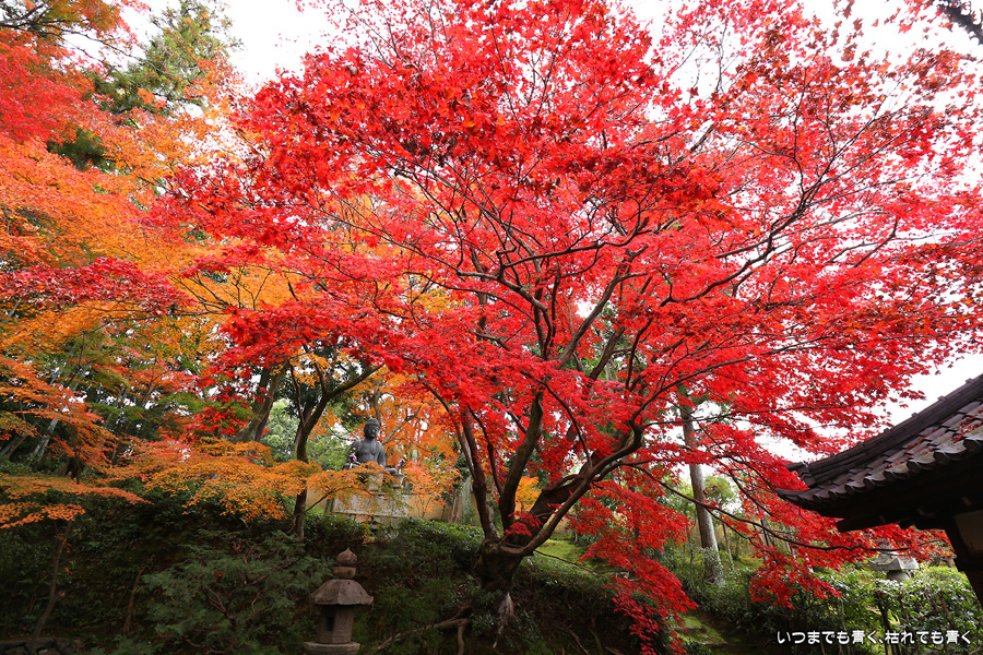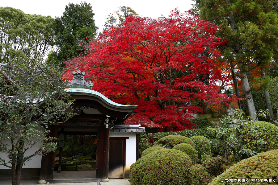 栄摂院は金戒光明寺の塔頭寺院です。昨年初めて訪れて気に入ったので、今年も紅葉を見に訪れました。こじんまりとした境内に赤と朱の鮮やかな木が大きく迫ってきていてとても美しいです。縁側に座ってのんびりと紅葉を眺める時間がとても贅沢です。