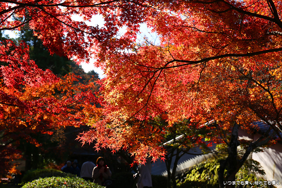 酬恩庵一休寺は、一休禅寺が人生の後半を過ごしたお寺です。昨年のJR東海「そうだ 京都、行こう」のポスターになったためにさらに人々に知られるようになりました。本堂の前の紅葉はすでに散り始めており、ポスターのような情景は目にすることはできませんでしたが、参道の紅葉は朝日を浴びて美しい赤色に染まっていました。