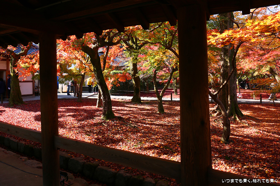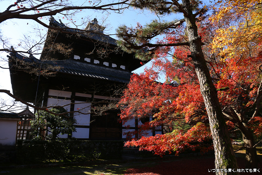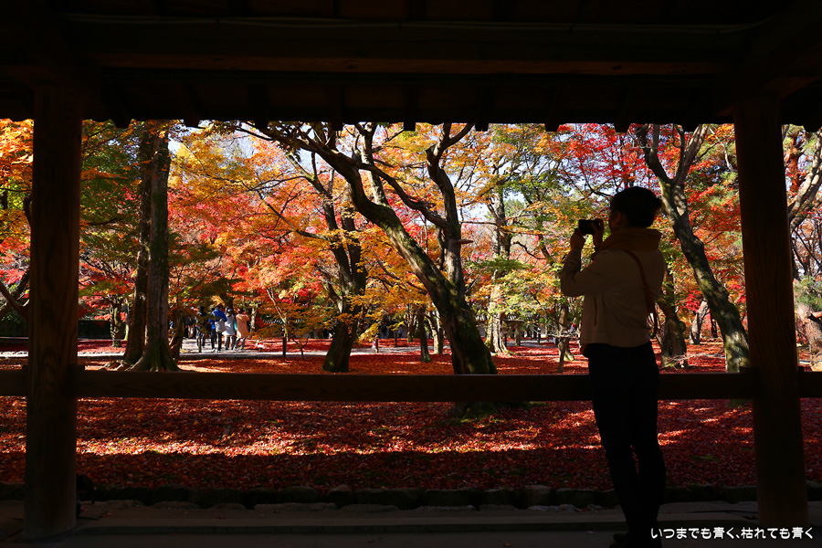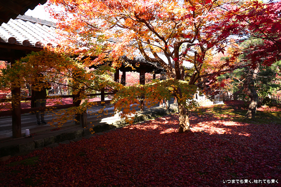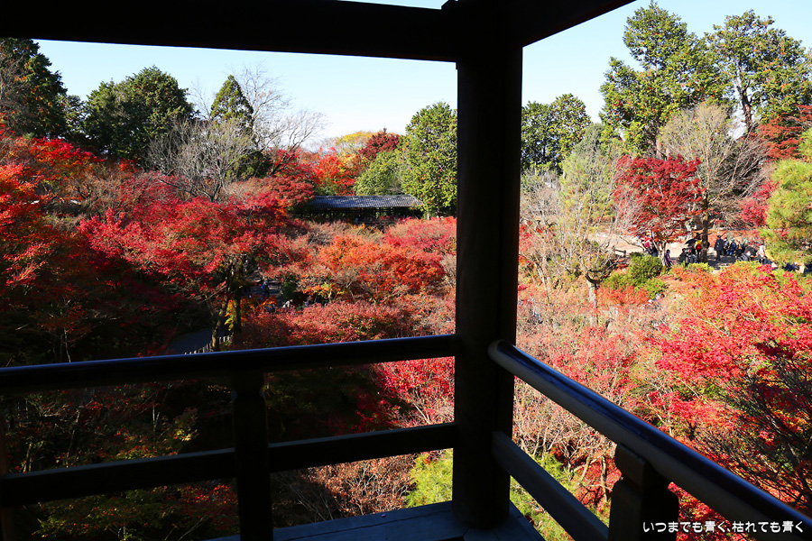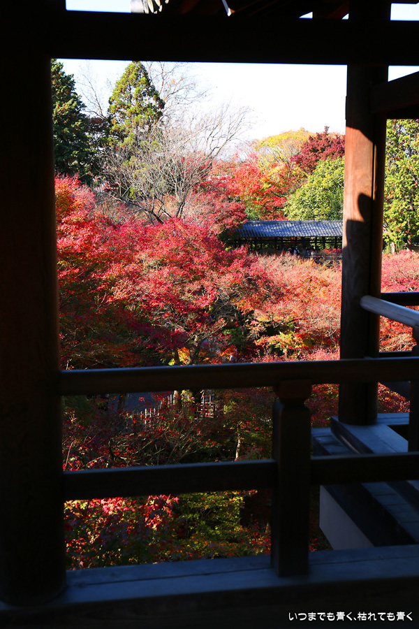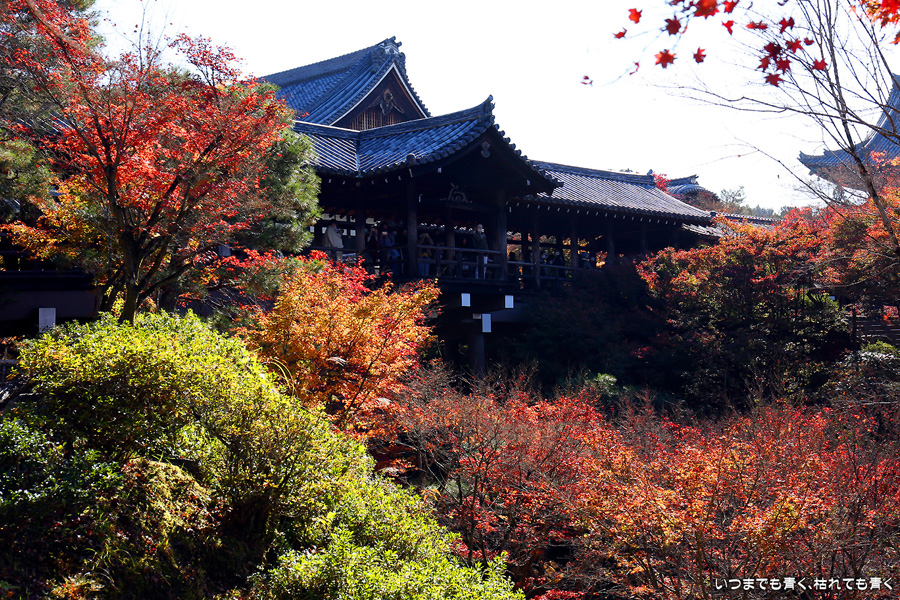 今回の京都3日間紅葉めぐりは、人の少ない穴場めぐりだったのですが、東福寺は何度も来ているのに最近は2015年から来ていないとわかって、どうしても東福寺の紅葉を見たくて混雑覚悟でやってきました。しかし、通天橋で人のいない写真が撮れるほど人が少なくて、嬉しい誤算でした。少し見ごろの時期が過ぎている感じはしますが、さすがに東福寺の紅葉は圧巻です。