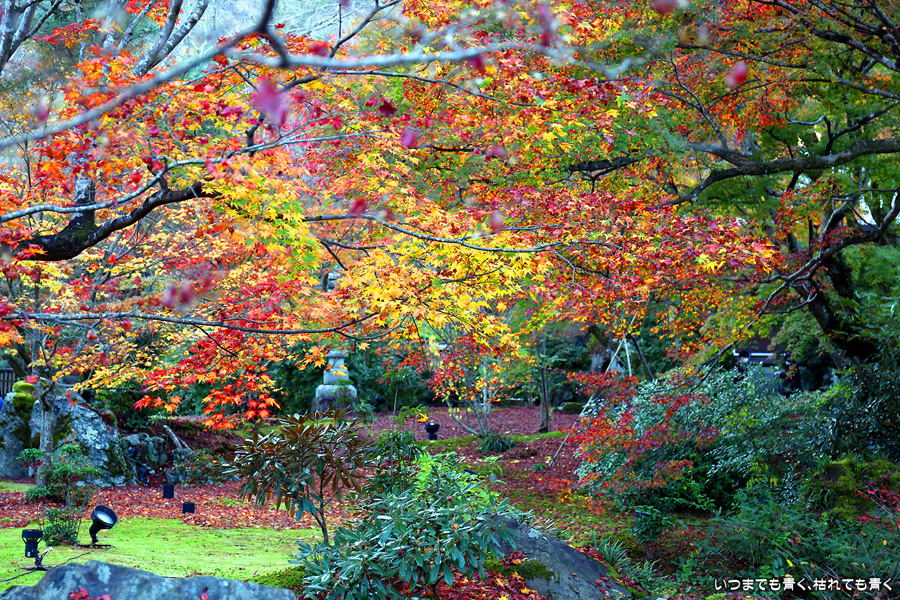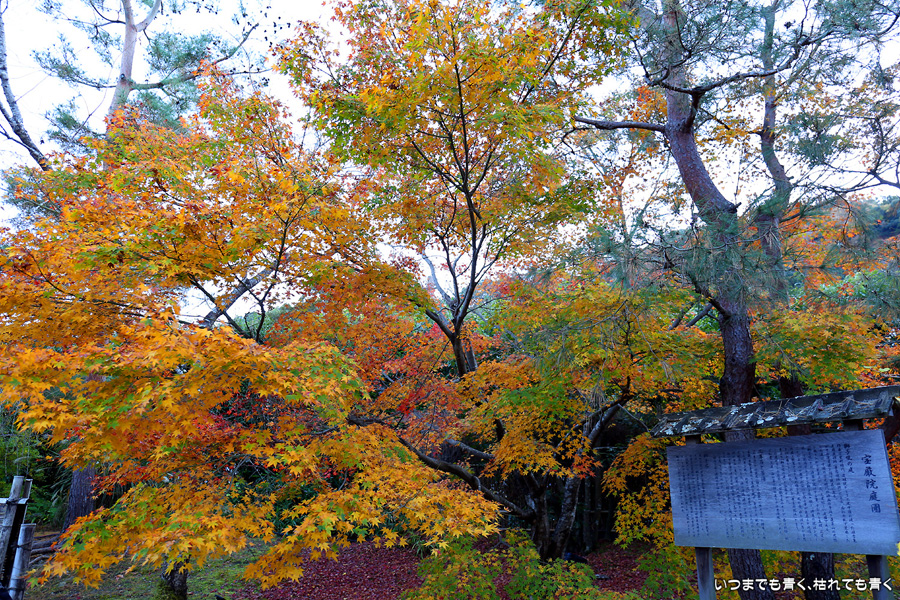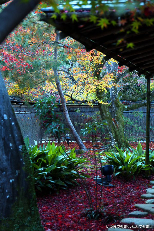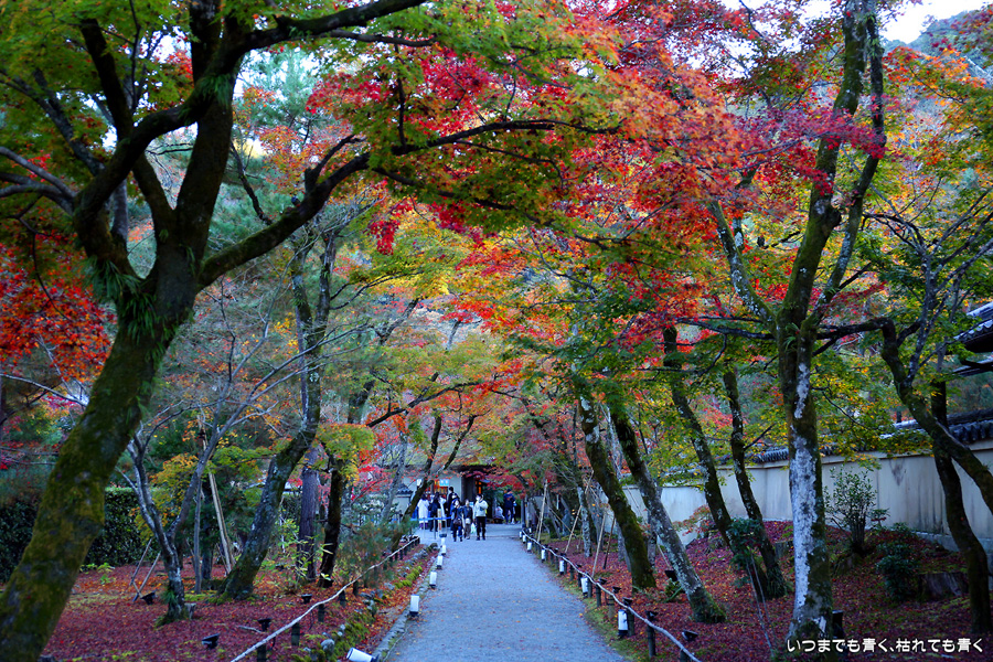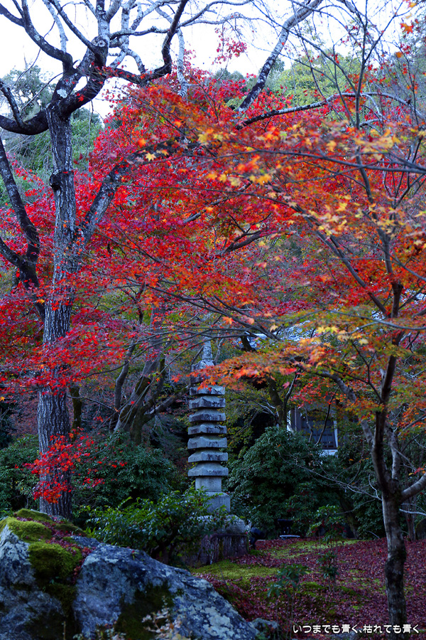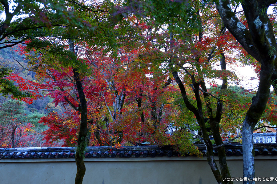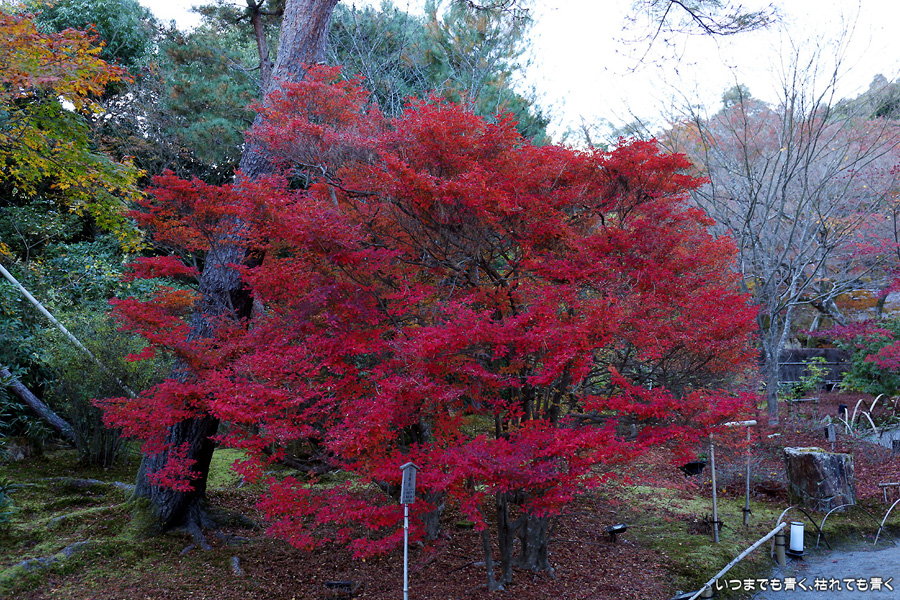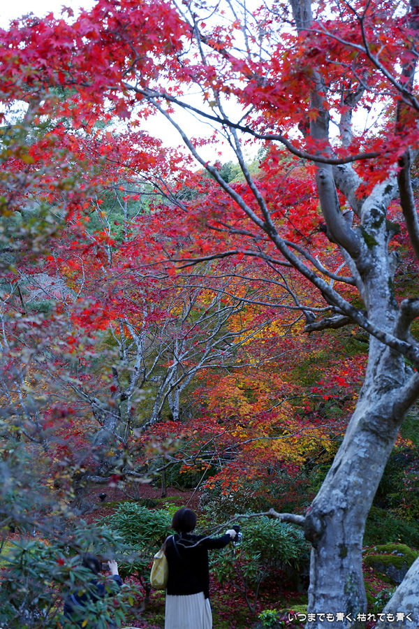 宝厳院は天龍寺の塔頭寺院です。宝厳院の素敵な庭園の紅葉はもう終わりに近づいており、太陽の光も山で遮られる時刻になってきていたため、紅葉の写真撮影にはちょっと厳しい状況でした。ちょっと残念でしたが、こういう庭園をのんびりと散策するだけで心はリフレッシュできます。