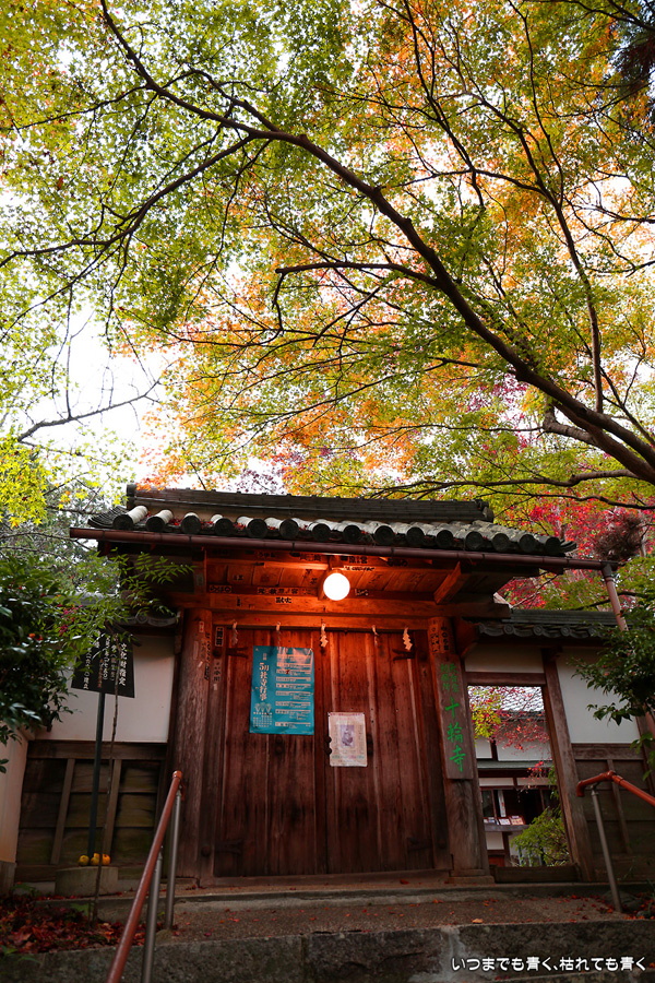 「京都3日間紅葉巡りぶらりひとり旅」の最後のお寺になります。このお寺はしだれ桜(樹齢200年なりひら桜)で「そうだ 京都、行こう」のポスターになったお寺です。昨年、善峯寺に行く途中通り過ぎたのですが、気になっていたので今年訪れてみました。訪問する人も少ないこじんまりとしたお寺ですが、私はこういうお寺が好きです。奥には在原業平のお墓があり、「なりひら寺」と呼ばれています。