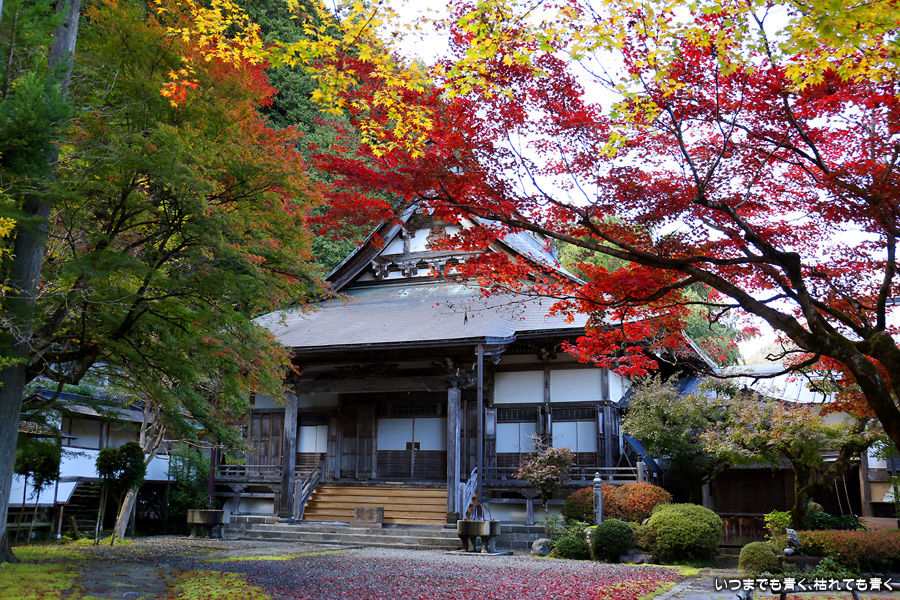 郡上八幡の古い街並みの奥にたたずむお寺です。大きくないお寺ですが紅葉と本堂や境内の風景がよく合うお寺です。来る人もまばらで静かに紅葉を楽しみ写真を撮ることができました。広くはないので被写体に大きな変化はありませんが、構図を変えることでいろんな情景を写してみました。