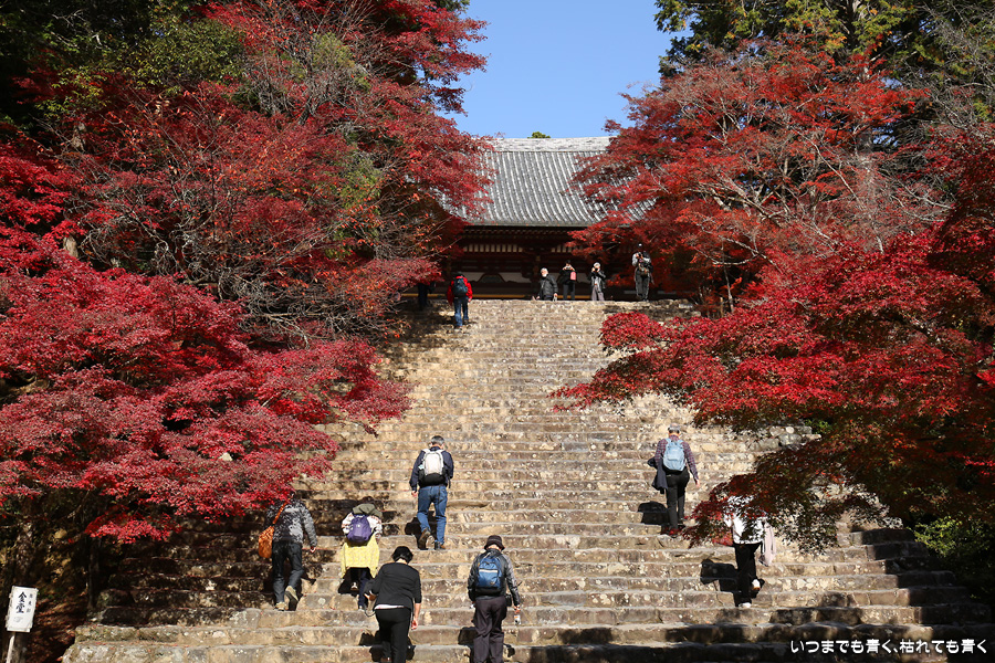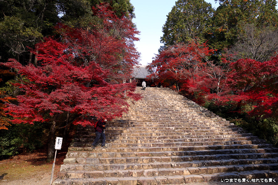神護寺は5年ぶりになりますが、今回は紅葉が一番美しいのではないかと思える時期に来ることができました。長い時間いても飽きることなくいろんな構図を捜しながら写真を撮っていました。自己満足できる写真も多くて充実した時間を過ごすことができました。ただ、金堂まわりの撮影にあまりにも夢中になりすぎ、地蔵堂の方に行くのを忘れてしまいました。地蔵堂まわりの紅葉を見忘れただけではなく、今回もまた「かわらけ投げ」をせずに帰ってきてしまったことになります。「かわらけ投げ」は次回の楽しみに残しておくことにします。写真の最後の4枚は、楼門からの境内ではなく参道での写真です。