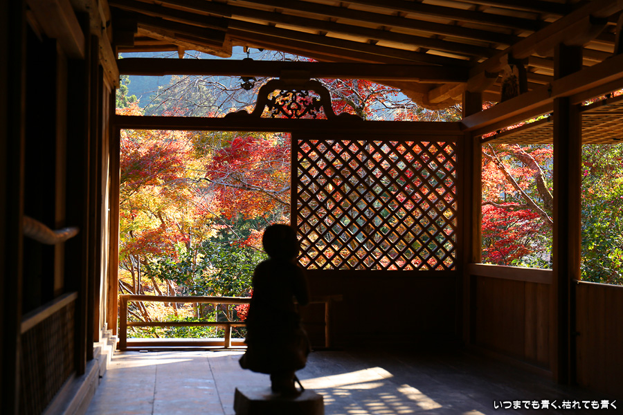 高山寺は4年前の夏に来たことがあるだけで、紅葉の高山寺は初めてになります。石水院の縁側に座って眺める紅葉は最高でした。高山寺は広い境内を散策したり石水院でのんびりと過ごしたり、贅沢な時間の使い方のできるお寺だと思います。