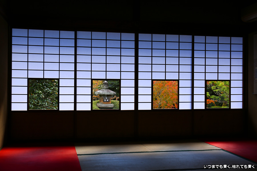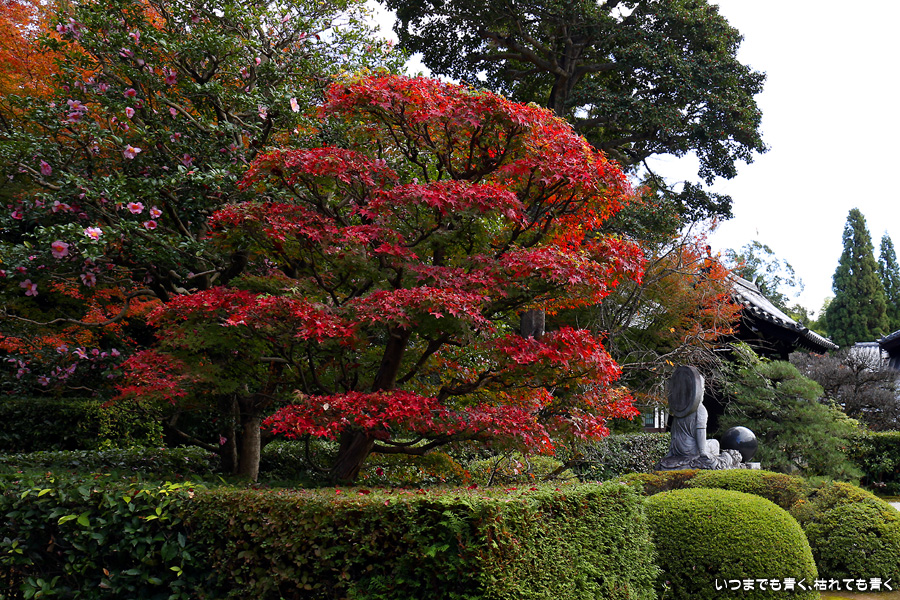 雲龍院は御寺泉涌寺の別院で、昨年の紅葉の時期に初めて訪れて気に入ったお寺です。書院悟之間の「悟りの窓」、蓮華の間の「椿・灯籠・紅葉・松の見える障子窓」が有名です。また、推理作家の山村美紗のお墓があることでも有名です。紅葉を楽しんだあと、2時間サスペンスドラマの大好きな私は、石段を登ってお墓に手を合わせてきました。