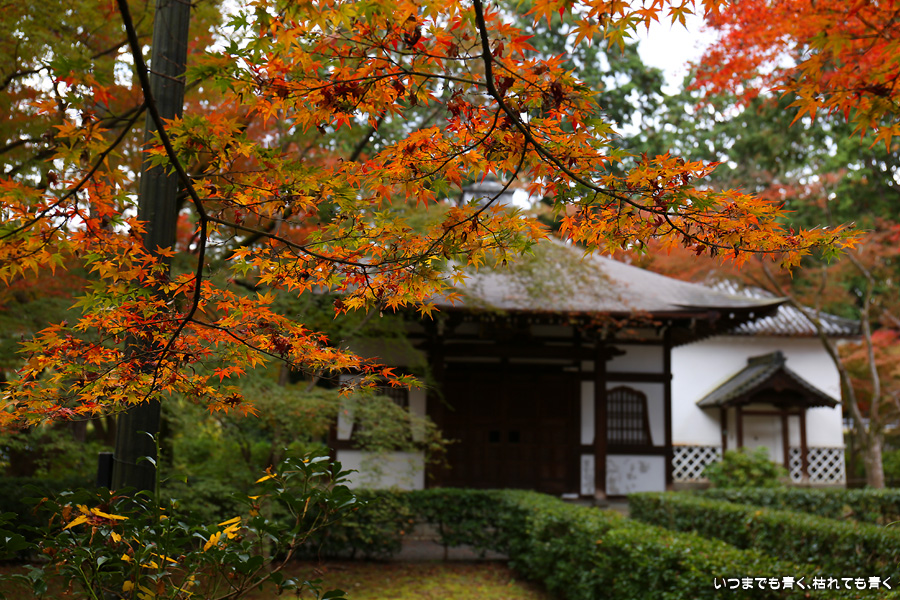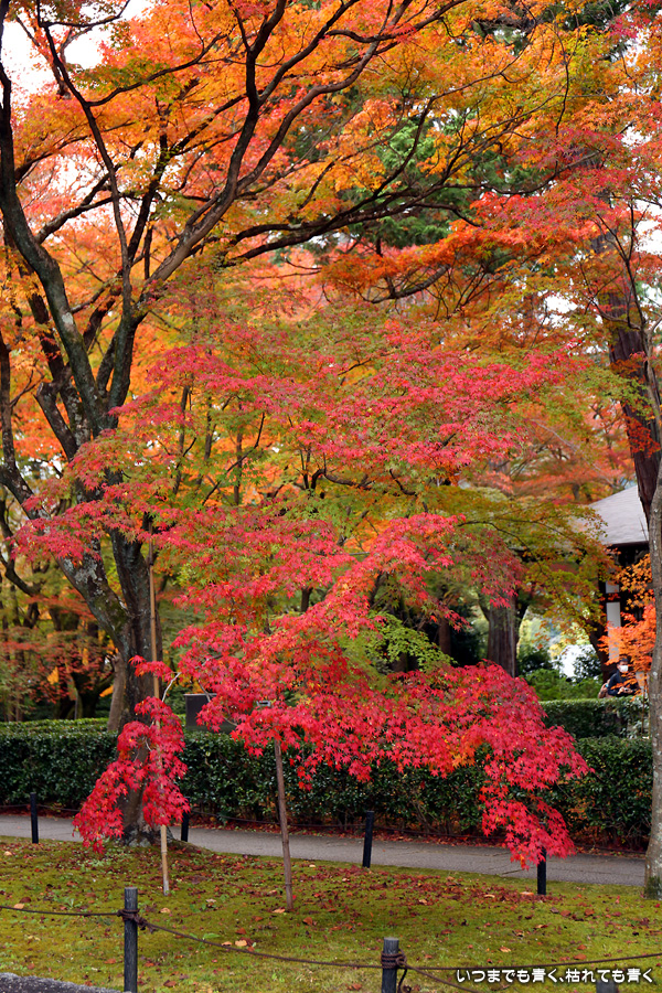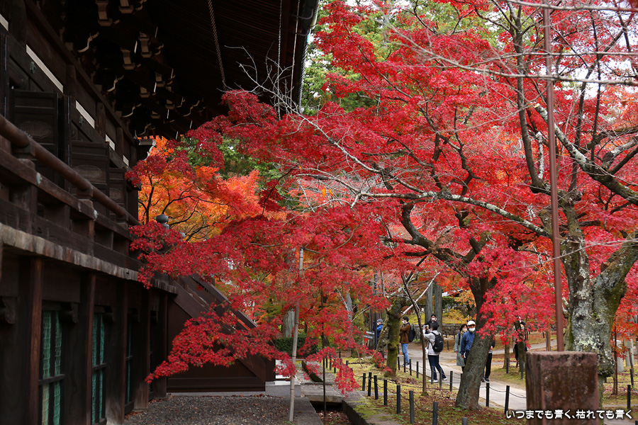 真如堂は紅葉の季節には何度も訪れていますが、今回は三重塔のまわりや本堂西側の赤く染まる紅葉は一番の見ごろは過ぎているような感じでした。ただ、本堂の東側や南側のオレンジ色の紅葉は素晴らしく見ごたえがありました。真如堂は境内を散策するだけでも紅葉は充分楽しめますので、今年も庭園の拝観は見送りました。