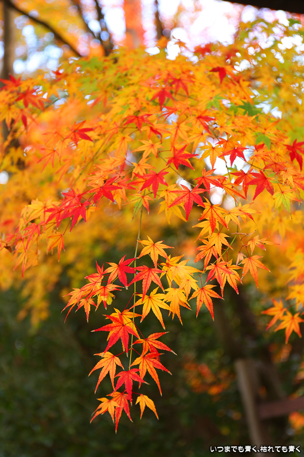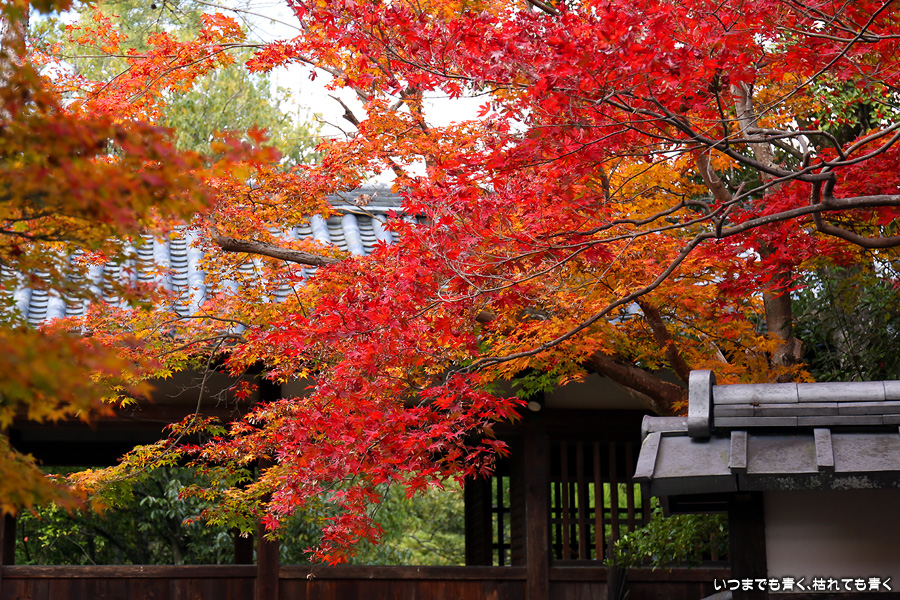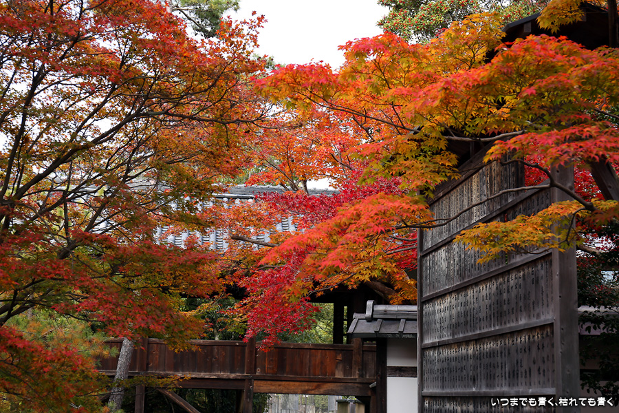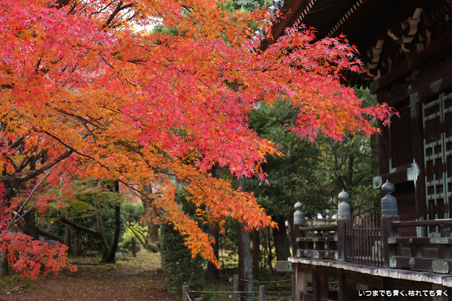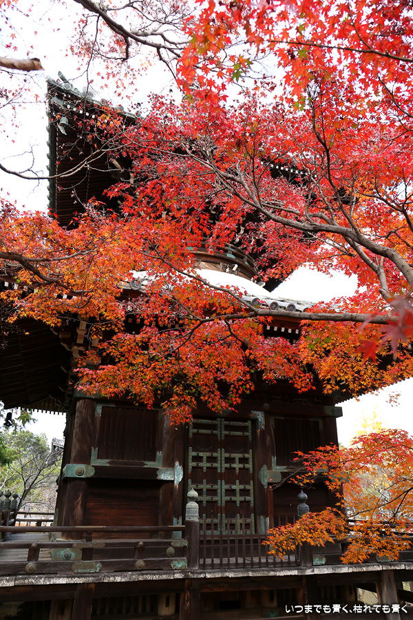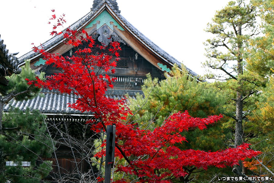 清凉寺は嵐山に行った時の拠点とする寺院で、拝観を目的とすることはあまりなく、今回も中継地点という位置づけでした。ですので、本堂内部、大方丈庭園、弁天堂庭園等は見たことがなく、無料の境内だけの散策と撮影ばかりです。境内の紅葉も美しいのですが庭園などと比べると単調な写真になってしまうのが残念なところです。次の紅葉の時期には、清凉寺の庭園を見てみようと思います。