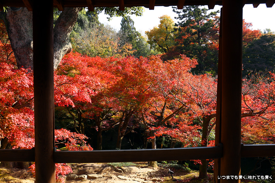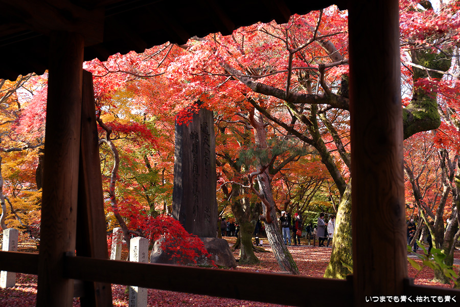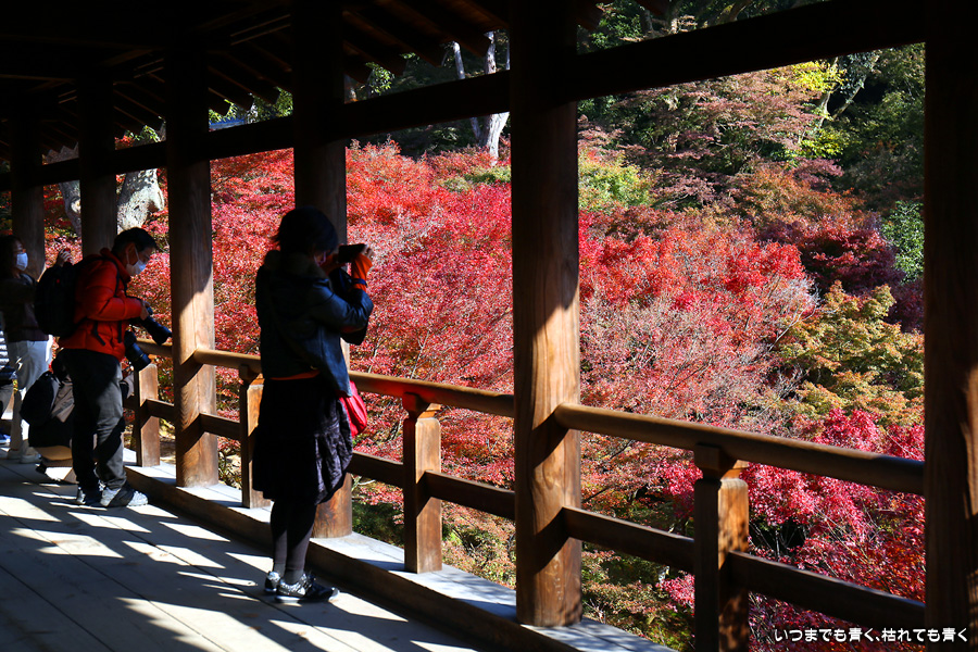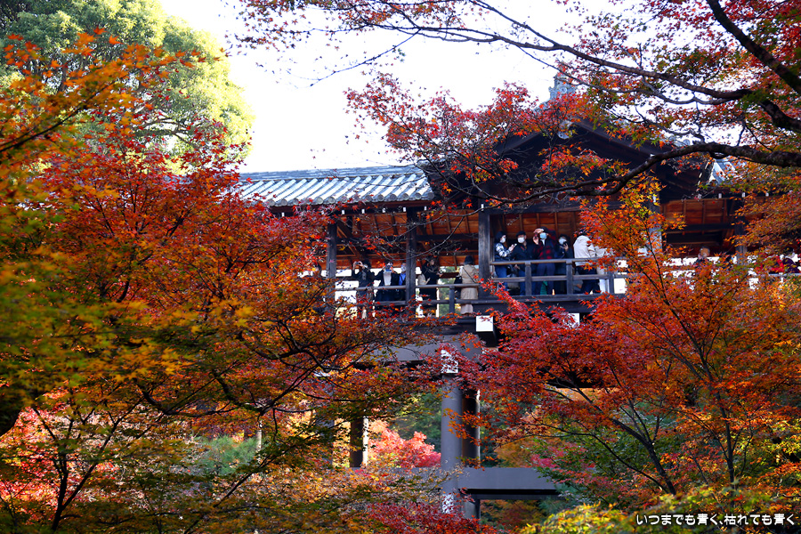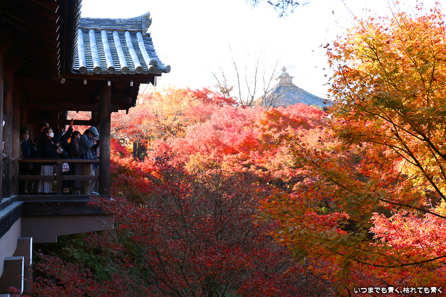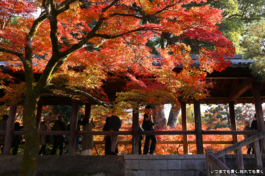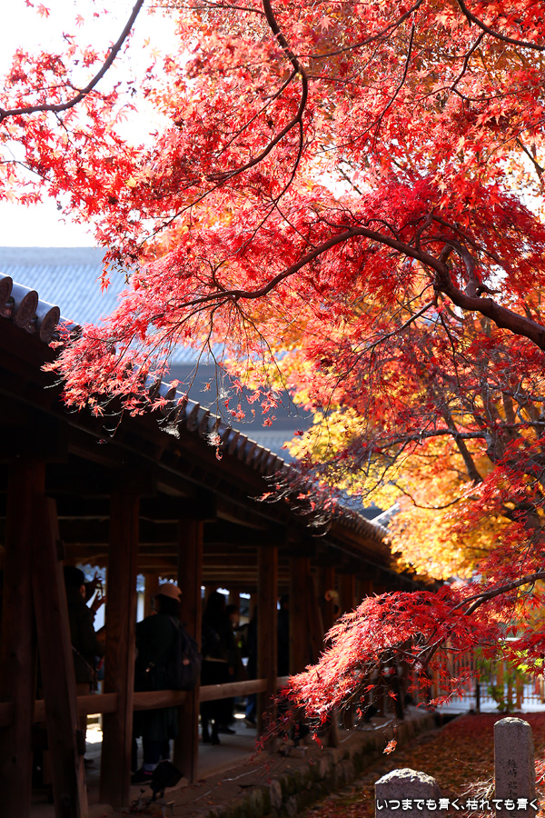 東福寺は人が多いことはわかっているのですが、毎年紅葉を眺めに来てみたいと思わせてくれるお寺です。私の好みにあっているようです。今年の東福寺も紅葉が見ごろで素敵でした。本当はのんびりと通天橋から紅葉の雲海を眺めるのがいいのでしょうが、写真を撮りたいという気持ちの方が強く、動いてばかりでした。今年は方丈庭園にも入りましたが、「八相の庭」をじっくりと楽しむこともせずに通天橋の写真を撮ることに夢中でした。