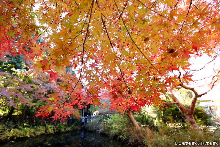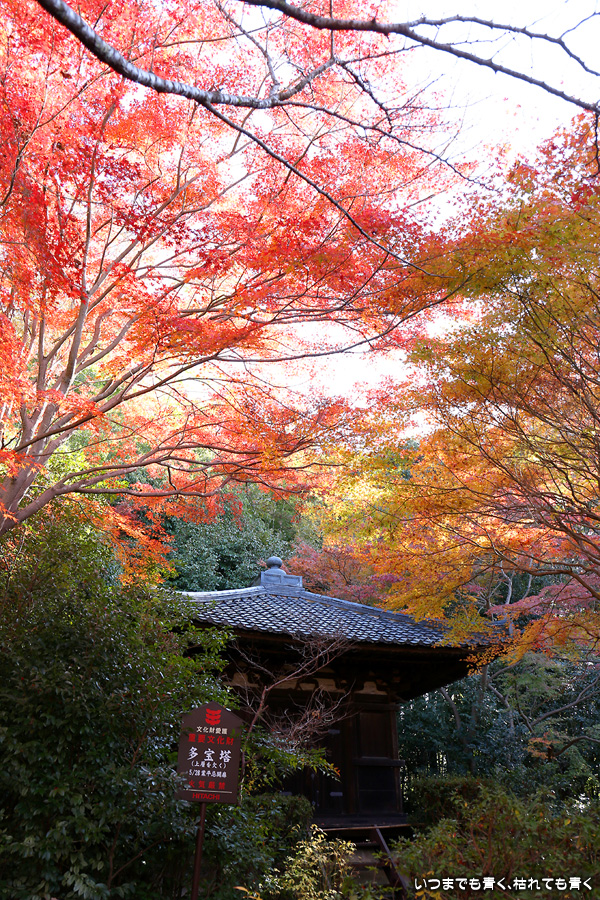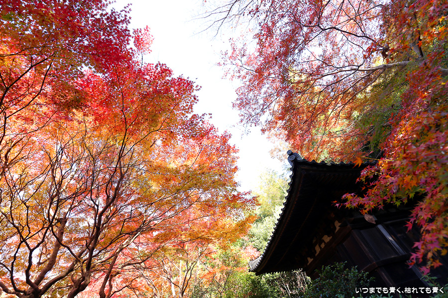 不退寺もテレビで紅葉が美しいと紹介されていたので訪れました。不退寺は在原業平が創建したと言われているお寺で「なりひら寺」と呼ばれています。お寺めぐりを始めてからいろんなお寺を訪れましたが、在原業平ゆかりのお寺で「なりひら寺」と呼ばれているお寺はけっこう多いです。不退寺の境内は狭いですが、紅葉の見どころや撮影スポットはたくさんあって、1時間半以上撮影を楽しんでしまいました。太陽の角度によって見え方が変わるので、そういう意味でも長くいて変化を楽しむのが良さそうです。