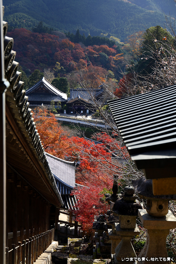 長谷寺は何度も来ていますが、紅葉の時期に訪れたのは初めてです。長谷寺はいつもながら見どころがいっぱいで、紅葉のシーズンも見ごたえ十分でした。写真の枚数も多くなってしまいました。今回は次に室生寺に行きたかったので少し時間に追われた感じの拝観でしたが、長谷寺は一日楽しむつもりで来ないとダメですね。page1の12枚目の写真は長谷寺で有名な撮影スポットですが、青葉の写真と紅葉の写真が揃いました。