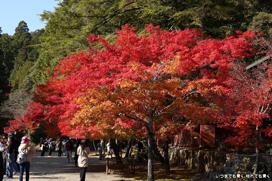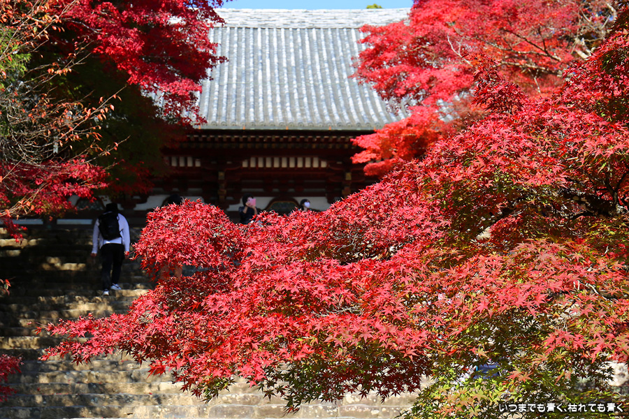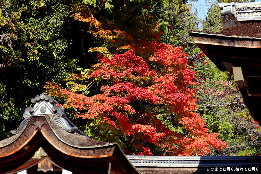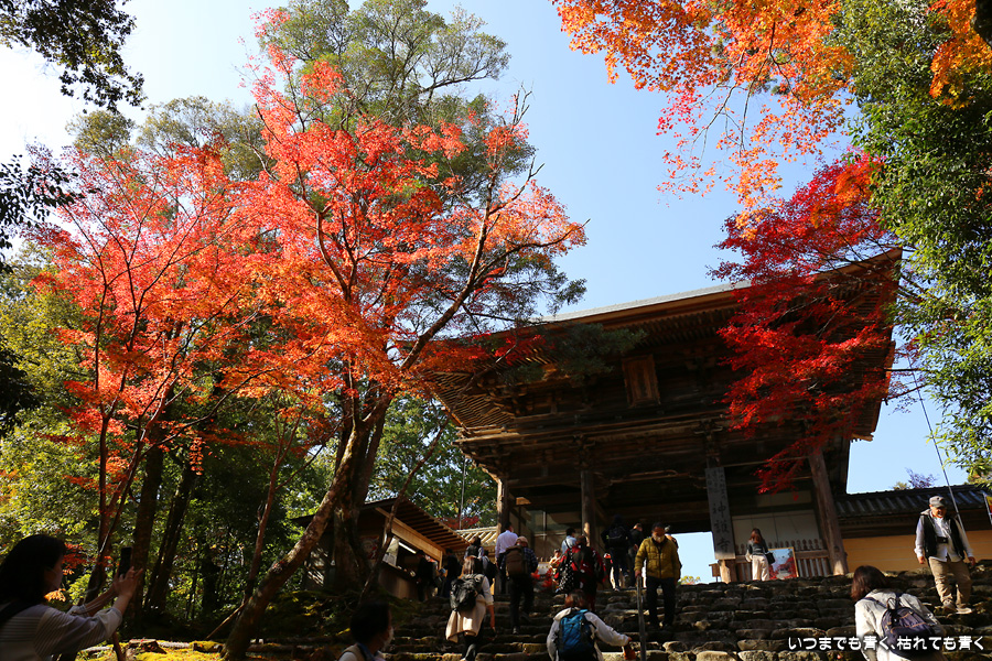 昨年より一週間早く訪れた神護寺ですが、今年は今がちょうど見頃で真っ赤な紅葉を楽しむことができました。一部青葉のままの葉もありますが、それはそれで緑、オレンジ、赤のグラデーションを楽しむことができます。何度も訪れている神護寺ですが、いつも行くのを忘れていた地蔵堂周辺や「かわらけ投げ」の場所まで行って撮影してきました。初めてやった「かわらけ投げ」はまともに左に円を描いて飛んだのは3枚中1枚だけで、ちょっと情けない結果となってしまいました。