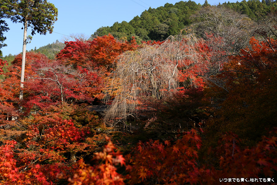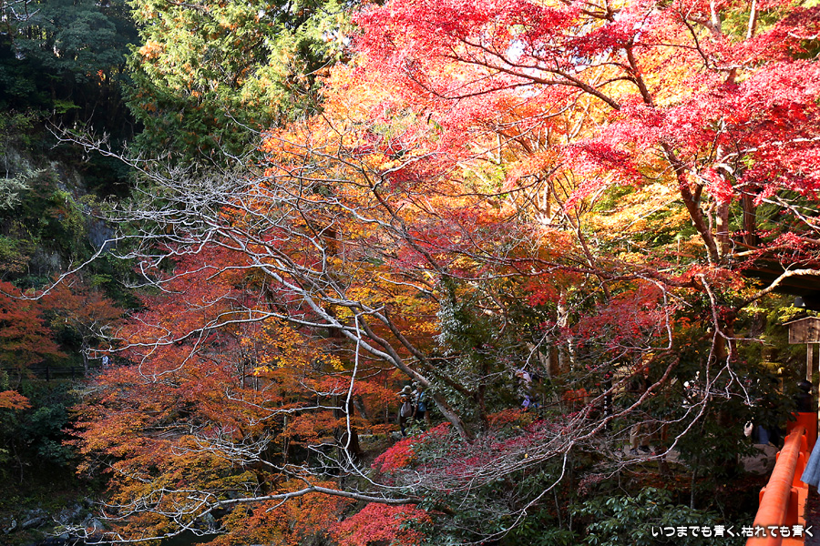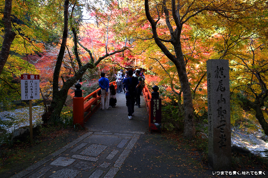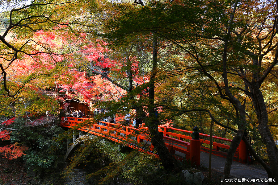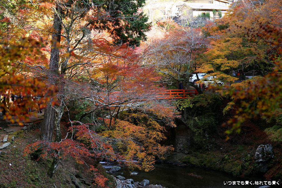 西明寺の境内の紅葉も見頃と聞いていたので拝観する予定でしたが、神護寺で時間を費やしてしまい、西明寺を拝観していると亀岡の鍬山神社に行く時間がなくなってしまうため、残念でしたが今回は指月橋での撮影のみにしました。