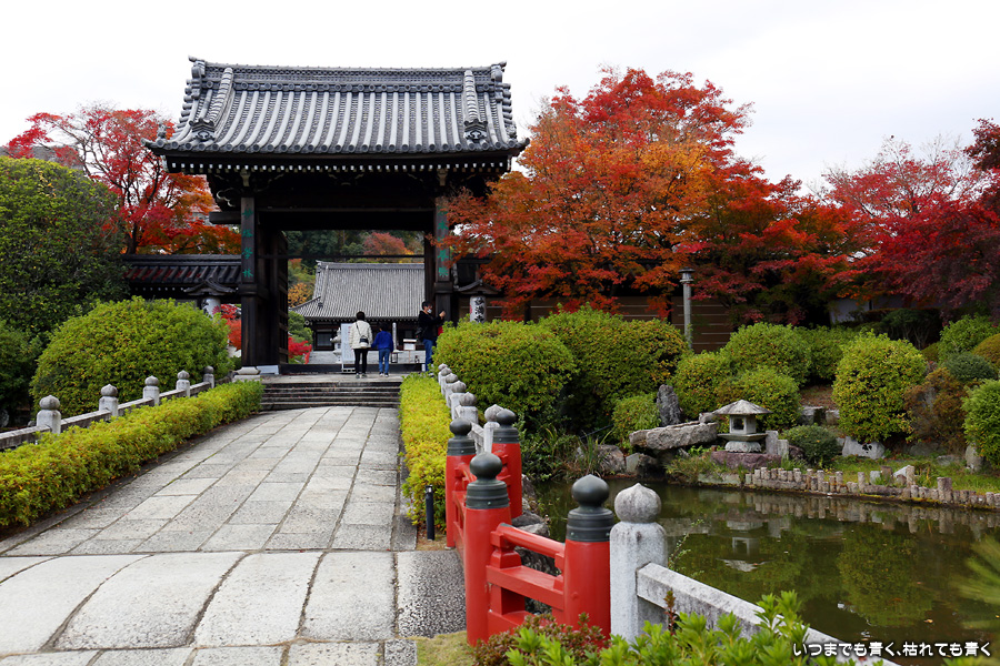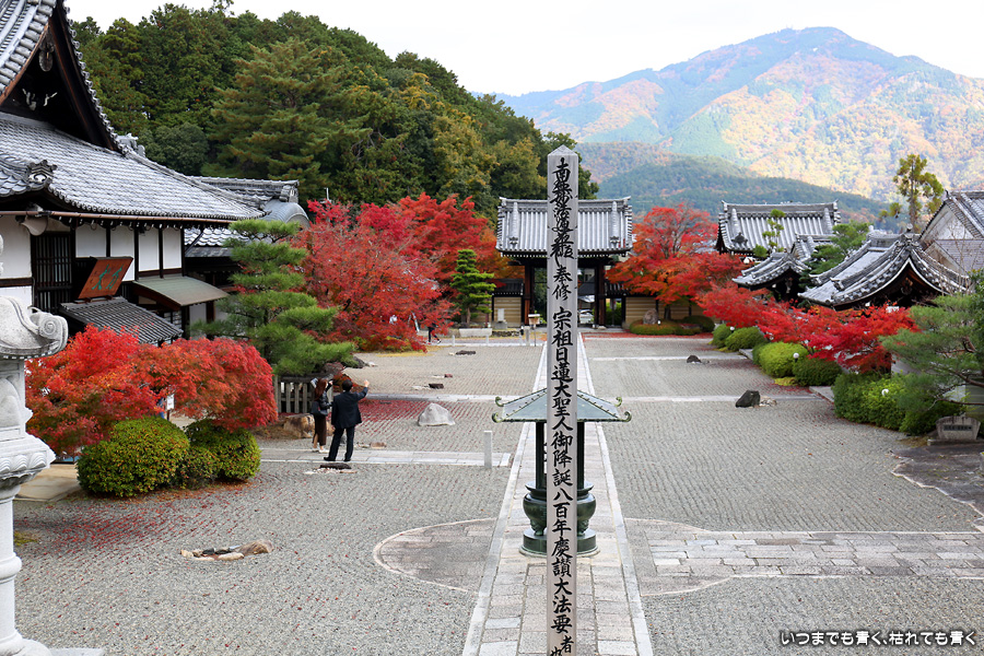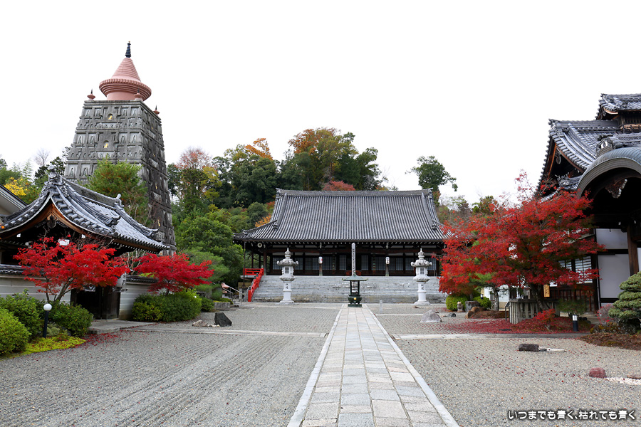 妙満寺は初めての参拝となります。広くて美しく整備された寺院で紅葉も真っ赤でとても美しかったです。いろんな角度から撮影することによって変化のある写真を撮ることができます。本堂と庭園を拝観することもできて、ゆっくりと時間を過ごすことができます。本堂からの比叡山を借景とする景色は素晴らしかったです。妙満寺は、名前から推測できる通り日蓮宗の寺院です。御朱印をいただく時に一番気を遣うのが日蓮宗のお寺で、御朱印と書かれているところは気兼ねなくいただけますが、何も書いていない場合は御朱印はいただけなくて御首題しかいただけないところもあります。普通の御朱印帳に御首題を書いていただける場合もありますし、御首題は御朱印帳には書いていただけないところもあります。よく確認することが必要です。妙満寺は御首題、御朱印ともにいただくことができます。