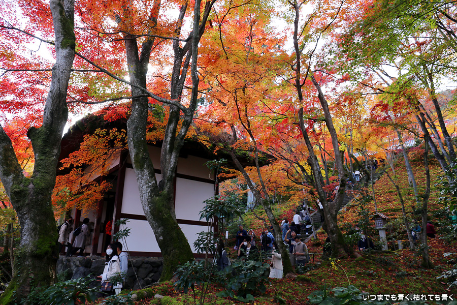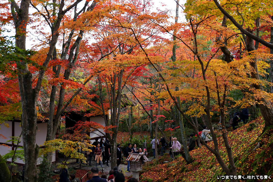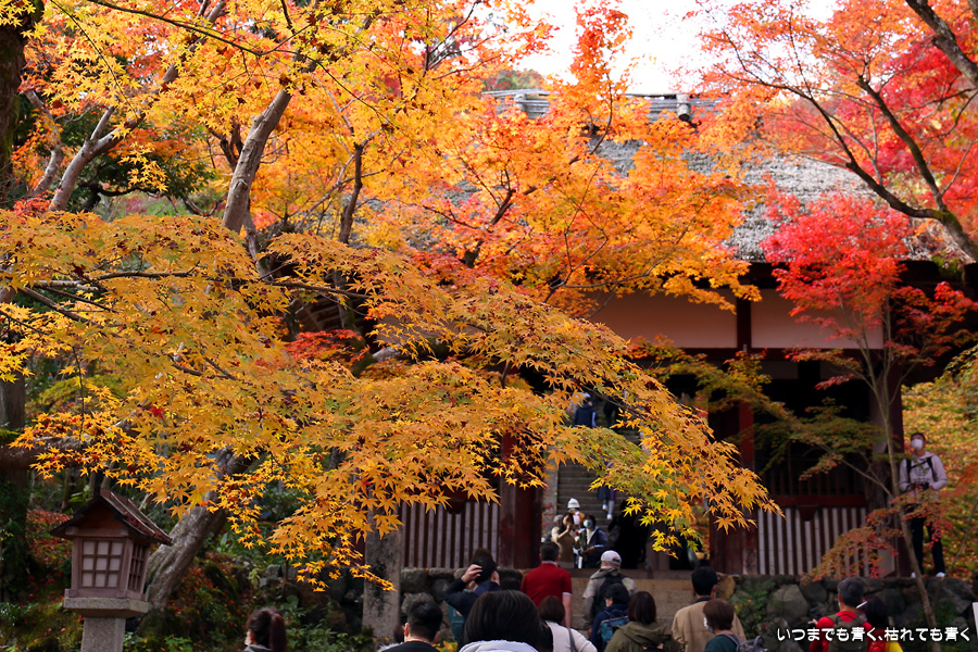 紅葉の季節、嵐山で私がいつも訪問するお決まりの場所は、二尊院、常寂光寺、祇王寺。今年は祇王寺は時間の関係と優先度であきらめましたが、常寂光寺の紅葉はやはり見ておきます。常寂光寺は境内が広く見所が多いので、紅葉の多様な景色を楽しめます。二尊院と同じく、常寂光寺も紅葉を楽しむには最適の時期でした。人はかなり多く写真を撮るにはちょっと我慢や割り切りが必要でした。