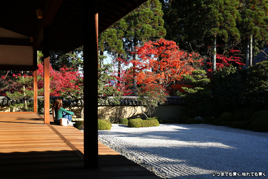 一休寺は2019年以来になります。今回も残念ながら、本堂前の紅葉は少なく同じ境内でも紅葉が早いものと遅いものがあるのかもともと葉が少ないのか、「そうだ京都、行こう」のポスターのような情景には出逢えませんでした。ここが5泊6日の京都ぶらり旅の最後の訪問地なので、静かな庭園の縁側に座って、あそこにも行きたかったとか行けばよかったとか、そんなことを思いながら今回の旅を総括していました。