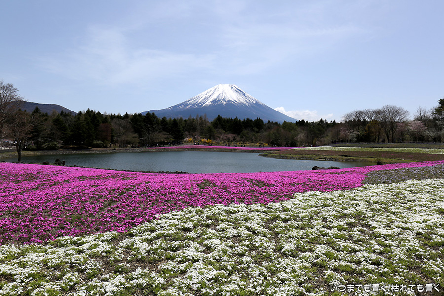 昨日着いた時は、急な悪天候で富士山は見えなかったのですが、今日の富士山はとても美しく見えました。目的の富士芝桜まつりは、広くて壮大。ただ、芝桜の密度が低く、地面が見えているところがちょっと残念に感じました。