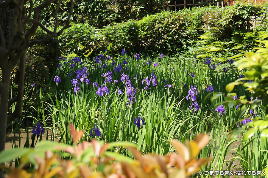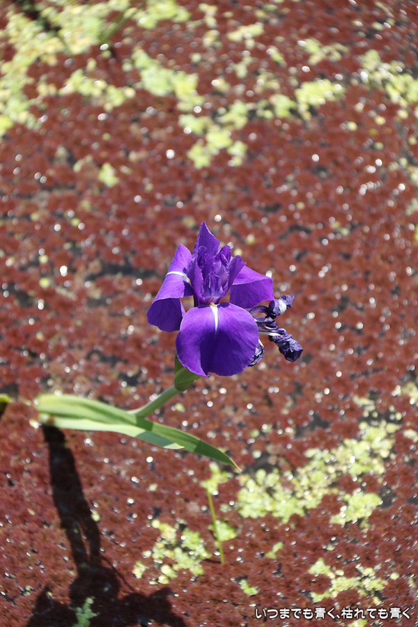 現地に行き、駐車場のおじさんに「今、かきつばたの見ごろはどうですか?」と尋ねたら、「見ごろだけど、株が少ないなぁ」と言っていたので、どんな感じかなと思って行ったのですが、想像していた以上の少なさでした。園内のガイドのおじさんとも話をしましたが、昨年よりは少し良くなったけど、今年もまだダメとのこと。池の水の循環を改善したり、新しい株を別の場所で種から育てていれたりしているそうですが、昨今の異常な温度変化の影響があってなかなかうまくいかないみたいです。時期的にも、例年は5月10日くらいが見ごろなのですが、今年は一週間前くらいが一番花の見ごろだったようです。今日は三番花が多く、萎んだ一番花、二番花も見栄えを損ねていました。今年は、チューリップも藤もかきつばたも、すべて見る時期を誤ってしまいました。気温変化が激しい難しい春でした。