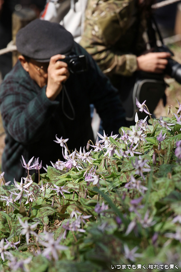 今年も香嵐渓のカタクリの花を見てきましたが、昨年までの密度高く咲き誇るカタクリの花に比べ、今年は花の数がとても少なく感じました。いつもの駐車場のご主人や奥さんに伺うと、今年は山からニホンカモシカが下りてきて、カタクリの花や葉を食べてしまうのだそうです。うまい対策が見つかるといいのですが。カタクリの花は毎年撮影していますが、なかなか絵になってくれない難しい花です。午前中に行くと花びらを閉じてしまっていますし、ひとつひとつの花を目立たさせるのか、群生をうまく表現するのか、迷ってしまいます。構図だけは単調にならぬように心がけましたが、並べてみると同じような構図が多くなってしまいました。