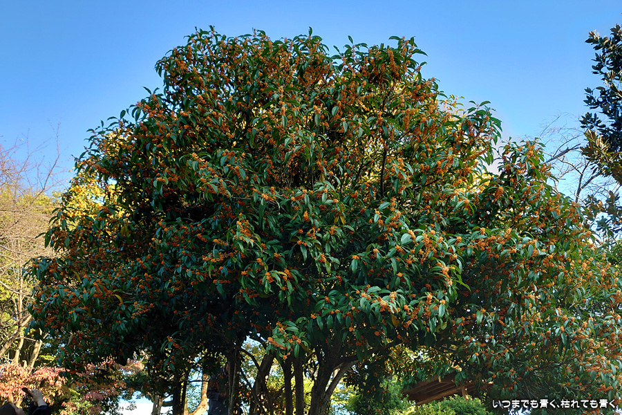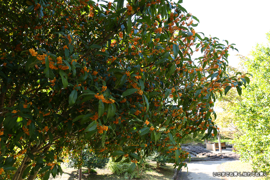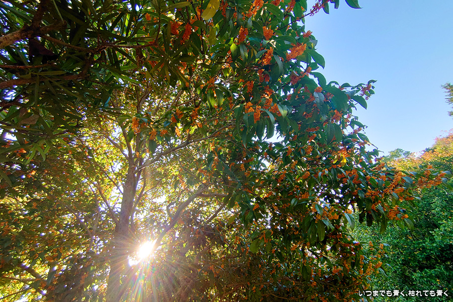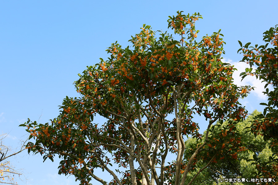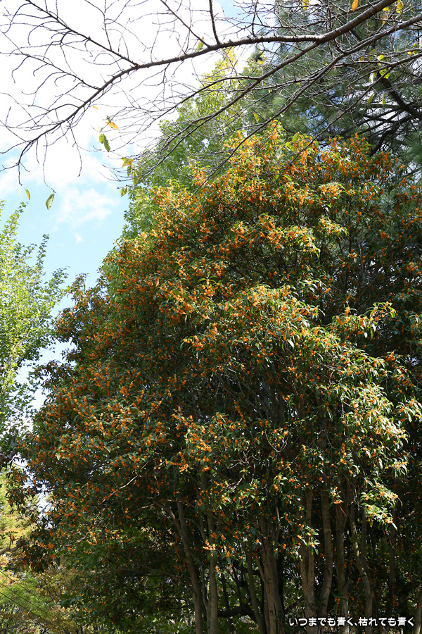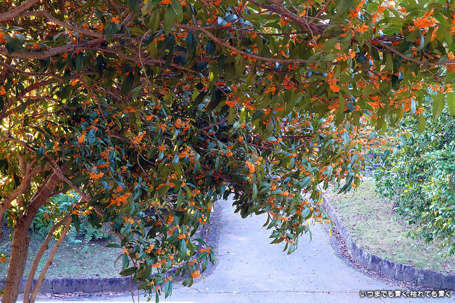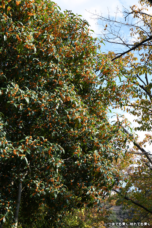 秋の西山公園を散策してきた時に撮影したキンモクセイの写真です。西山公園にこんな立派で身近なキンモクセイがあることを今回初めて知りました。長女の試験待ちの間にひとりで時間つぶしで訪れたのですが、娘はキンモクセイとその香りがとても大好きなので、試験の帰路に再度立ち寄って娘に教えてあげたらとても喜んでスマホで写真を撮っていました。私もキンモクセイの香りを嗅ぐと本格的に秋なんだなぁと感じます。