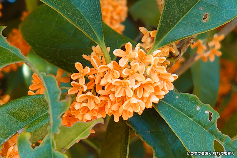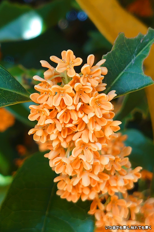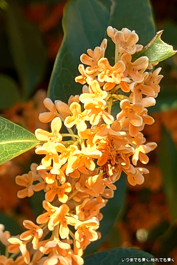 2023年10月18日(水)に撮影した、愛知県豊田市竹町のキンモクセイの花の写真です。