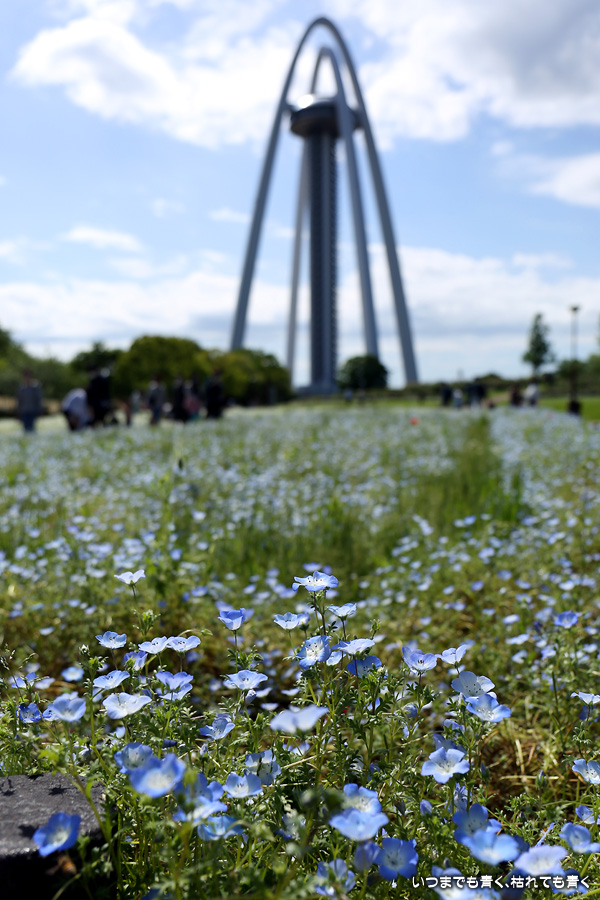 2022年4月30日に撮影した、愛知県一宮市・国営木曽三川公園138タワーパークのネモフィラの写真です。