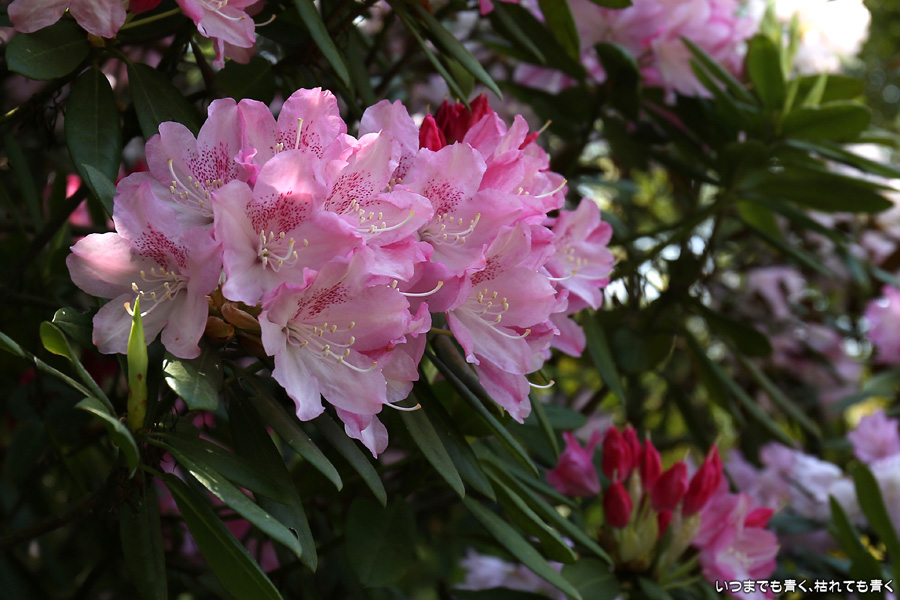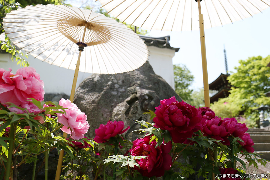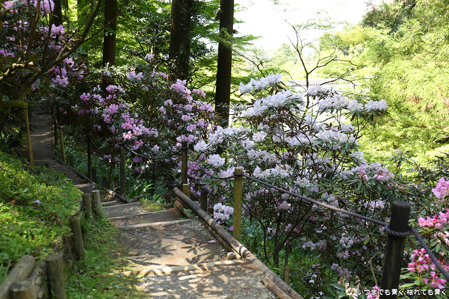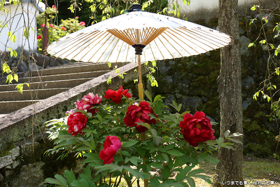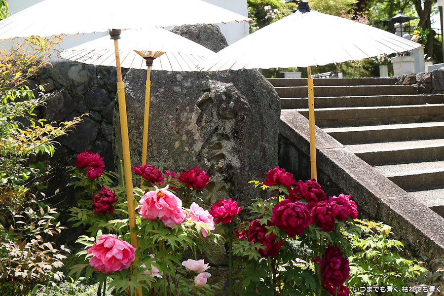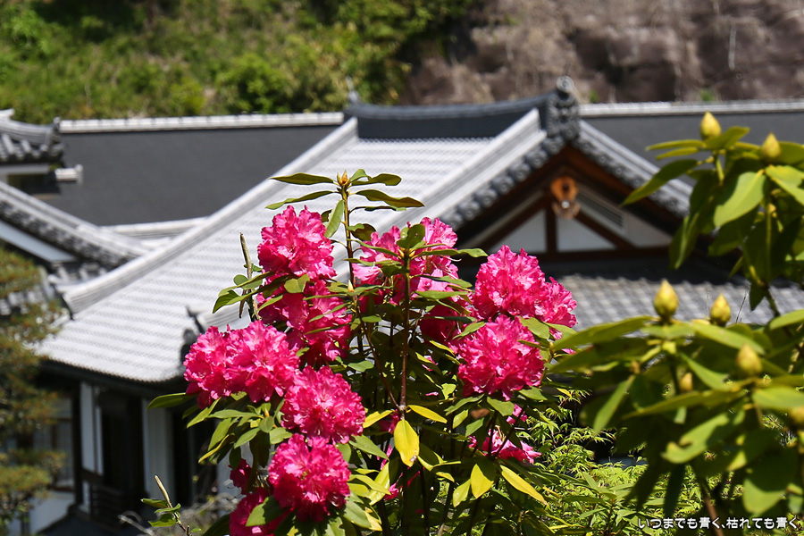 2021年4月20日に撮影した、奈良県明日香村・岡寺の石楠花と牡丹の写真です。