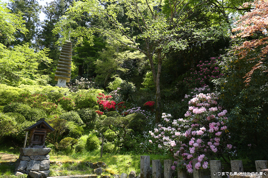 岡寺は、ウグイスの鳴き声が響く静かなお寺です。散策路や三重宝塔の前の石楠花はとても美しく、ちょうど見ごろで楽しめました。のんびりとこういうお寺で過ごす時間が大好きです。