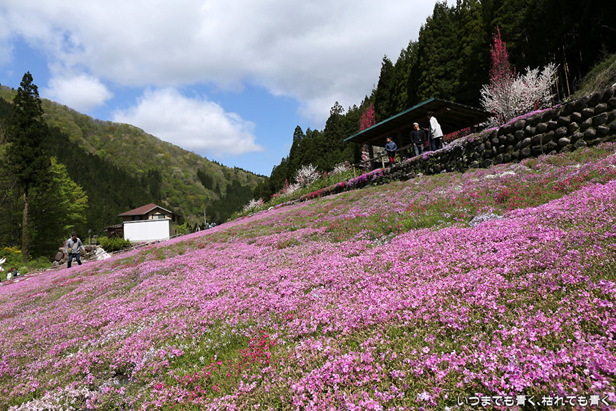 ゴールデンウィーク休みに有給休暇を入れて、4月29日から11連休。初日はひとりで國田家の芝桜と郡上八幡の町を歩いてきました。國田家の芝桜は、思っていたよりも花が少なめ。地元の人に尋ねたら、今年は咲くのが早くて見ごろは先週だったことと、前日の強い雨で花がしぼんでしまっているからだとおっしゃっていました。自然相手だと仕方がありませんね。それでも、山あいに広がる赤やピンクの芝桜の絨毯は絵になります。