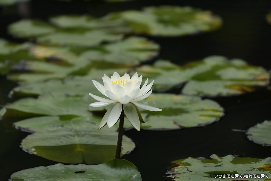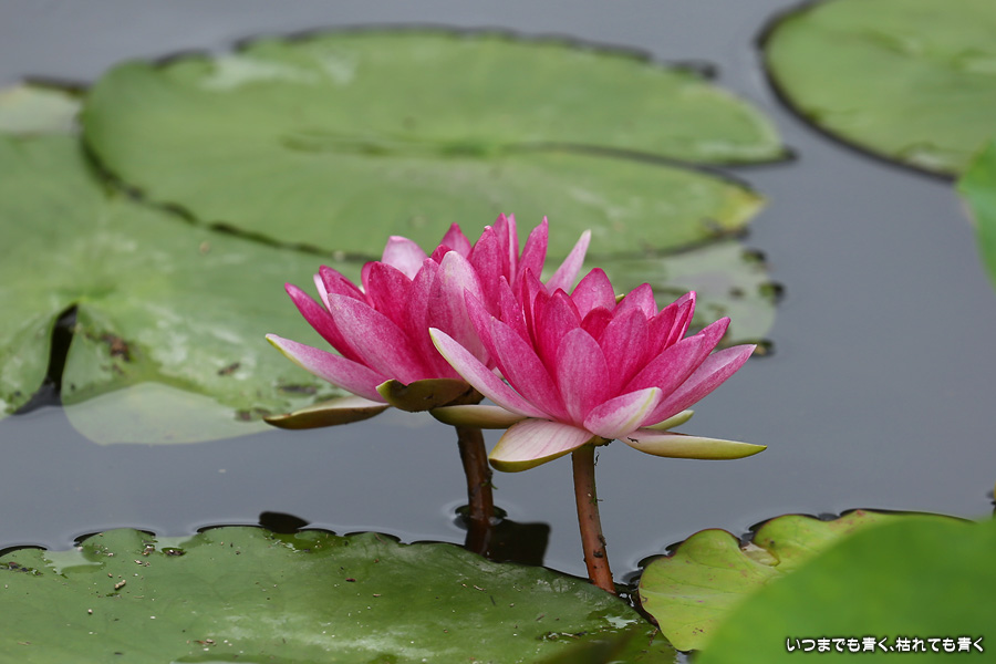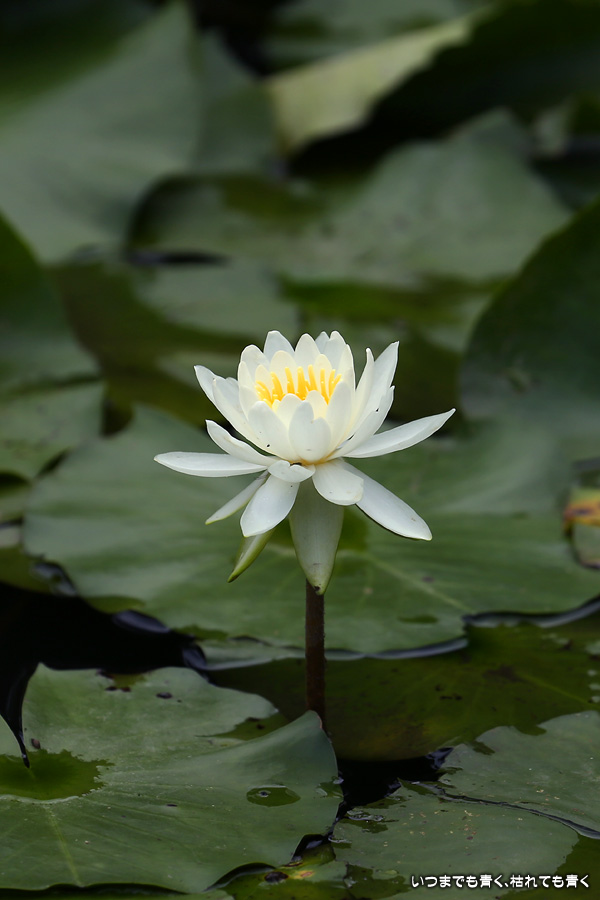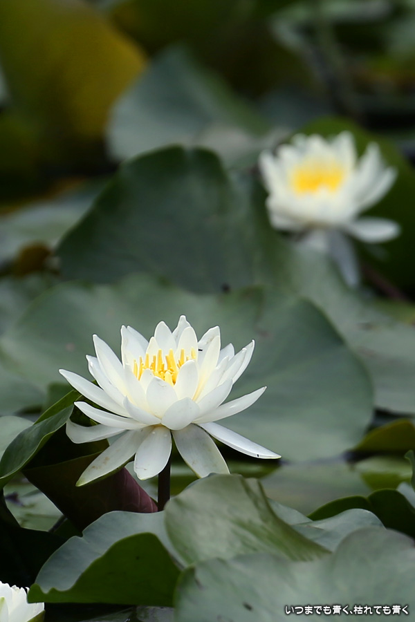 初めて訪れた勧修寺の睡蓮の花です。観音堂の脇の池にたくさん咲いていました。同じ池に蓮の花もたくさん咲いていましたので、その写真は