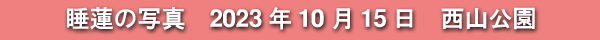 2023年10月15日(日)に撮影した、愛知県豊田市・西山公園の睡蓮の花の写真です。