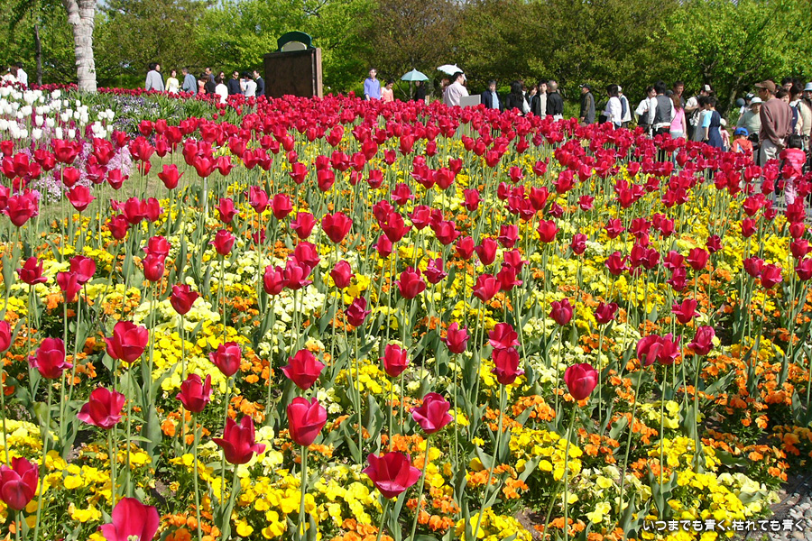 今日はチューリップ畑を見たくて家族、奥さんの両親と「なばなの里」に行ってきました。広大な土地にきれいに花の色をわけて植え込まれた120万株のチューリップ。壮観で見事ではあったのですが、何か違うものも感じてしまいました。私の中のチューリップは、小さな庭に数本、「私はチューリップですよ」と自己主張して目立って咲くのがらしいと思っていましたので、そんな印象を持ってしまいました。