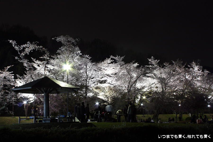 職場仲間との花見宴会のあとでクルマからカメラと三脚を持ち出して撮影しました。しかし、構図的にも技術的にもぱっとしない写真です。