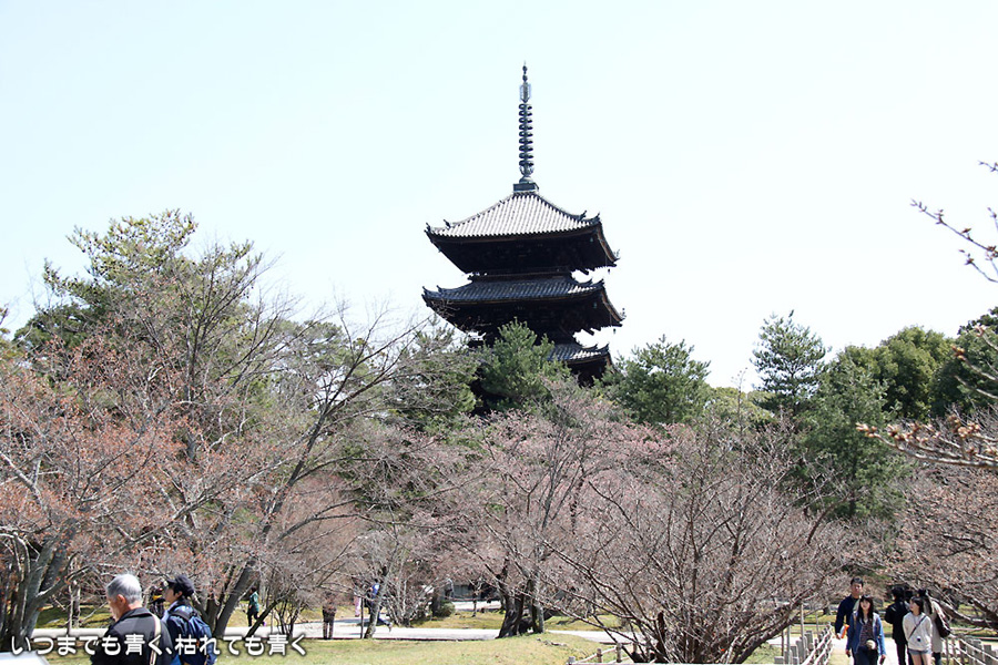 御室桜の時期はもっと後だということはわかっていたのですが、ソメイヨシノはもう咲いているだろうと思ってやってきました。駐車場にクルマを止めて東門からはいると、参道に桜の木が数本。つぼみが多いもののそれなりに咲いていましたので、五重塔のあたりも桜の花を期待して行ったのですが、結局この参道の桜が一番開花が早い桜でした。桜の花の中の五重塔を見たかったのですが、残念ながら見ることはできませんでした。できれば、御室桜の時期にもう一度来たいですね。