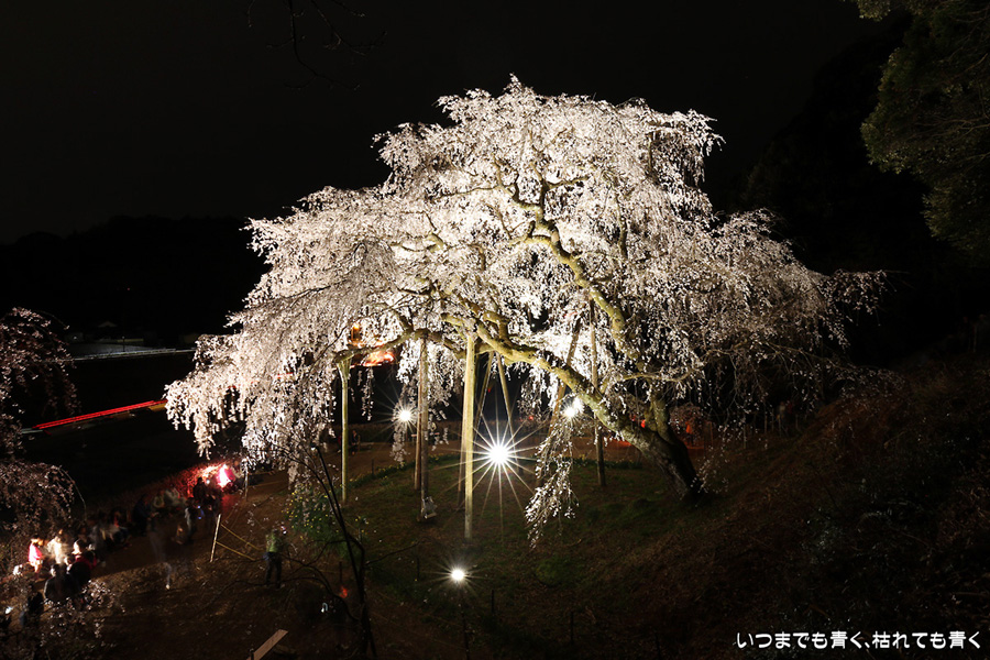仕事を終えたあと、ライトアップされた奥山田のしだれ桜を見に行ってきました。今年は見事に咲き誇っていて、荘厳なたたずまいです。