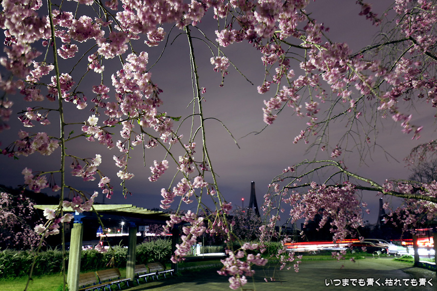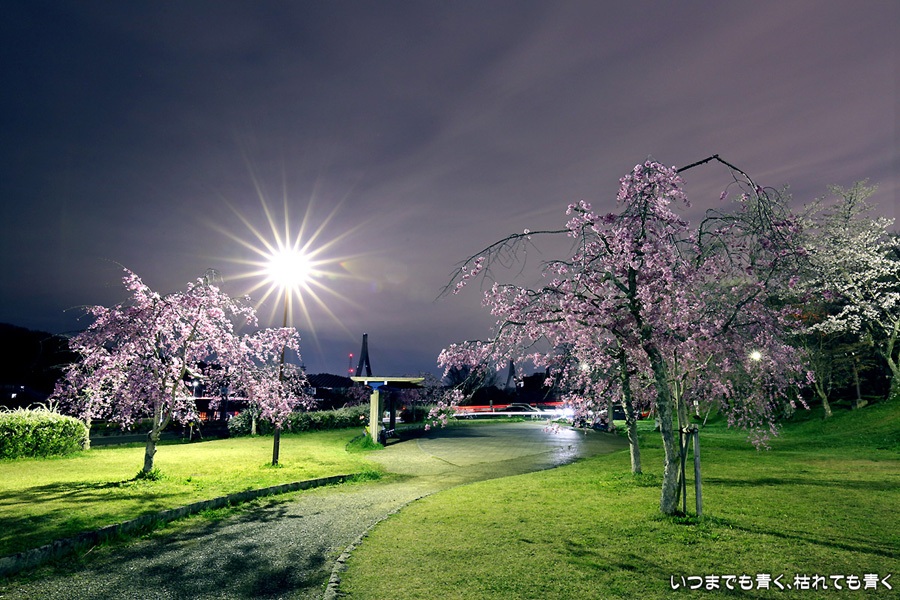 2017年4月10日に訪れた、豊田市・水源公園のの夜桜の写真です。