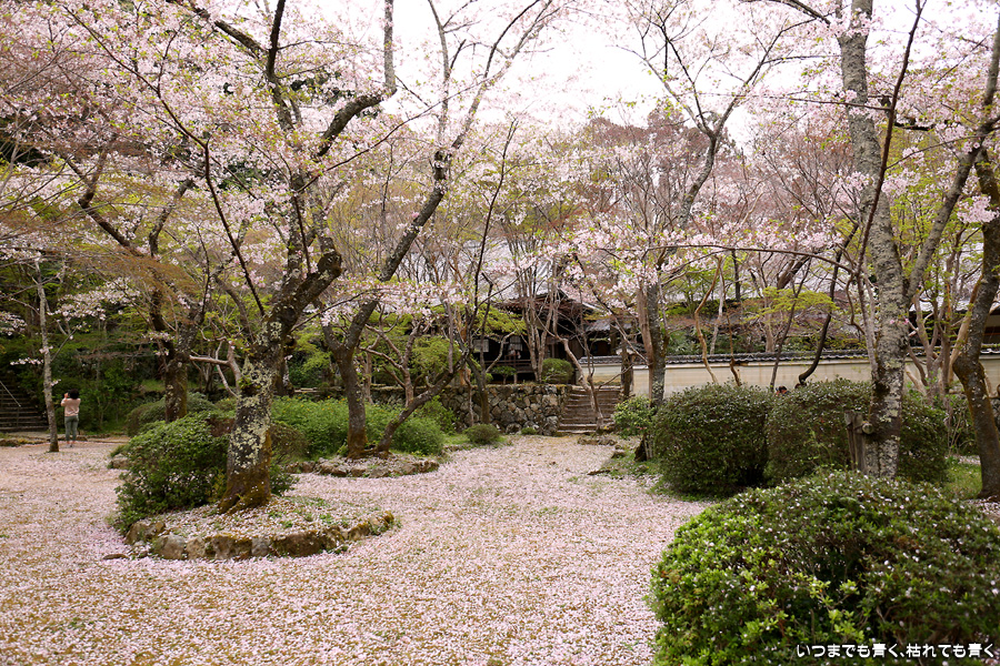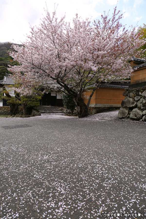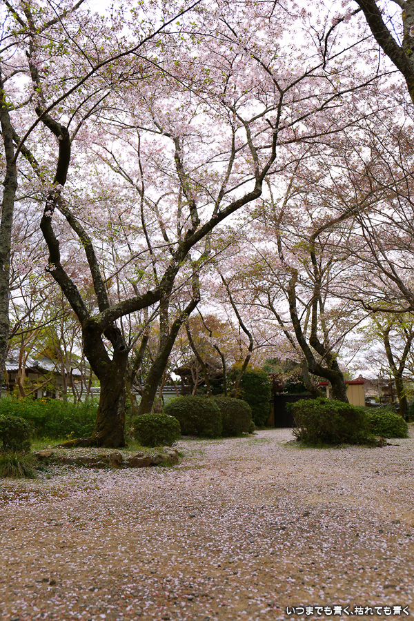 本当は3月27日に訪れるつもりだったのに、忘れて飛ばしてしまったお寺です。一週間経つと情景は一変。枝に花はまだ残っているものの葉が出てきていますし、地面はピンクの花びらで覆われています。満開の情景も見たかったですが、この情景も美しいですしこれも縁なので、満開の情景は来年以降の楽しみしておきます。初めて訪れた勝持寺というお寺は花の寺とも呼ばれ、中に入ると高低差もあって広くてゆっくりとお寺の雰囲気を楽しめるお寺で、とても良かったです。