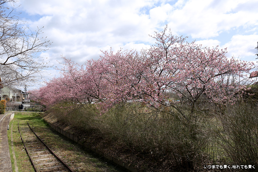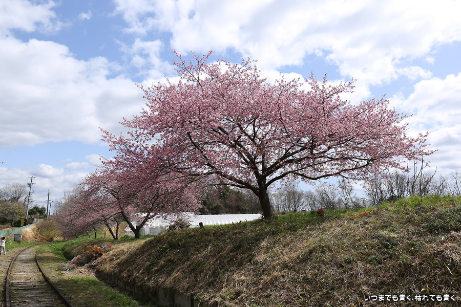 名鉄三河線の猿投駅から中西金駅間の山線と呼ばれる線が廃止になったのは2004年です。その廃線跡の三河御船駅跡には河津桜が植えられています。初めてそこに行って写真を撮ってきました。