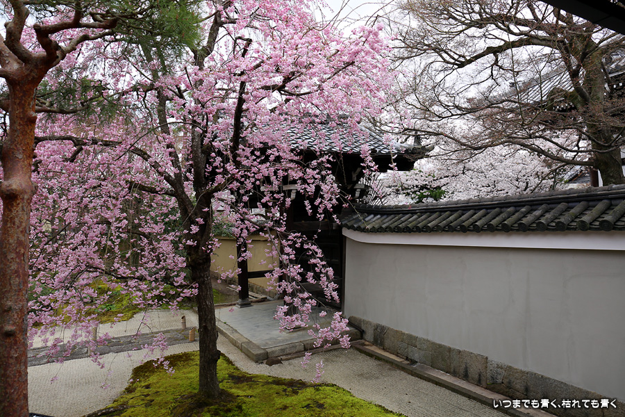 妙顕寺は2020年秋に紅葉を見に来ましたが、このお寺は春のほうが素敵に感じました。同じ場所でも視点の角度や焦点距離を少し変えれば違う印象の写真が撮れるので、時間を忘れて撮影していました。空も幾分明るくなったことと、紅しだれ桜の色のおかげで少しは華やかな印象の写真も撮ることができました。