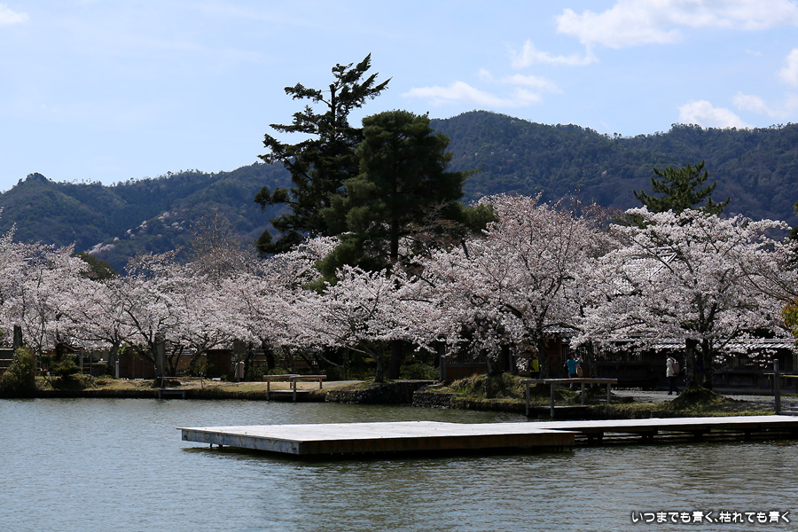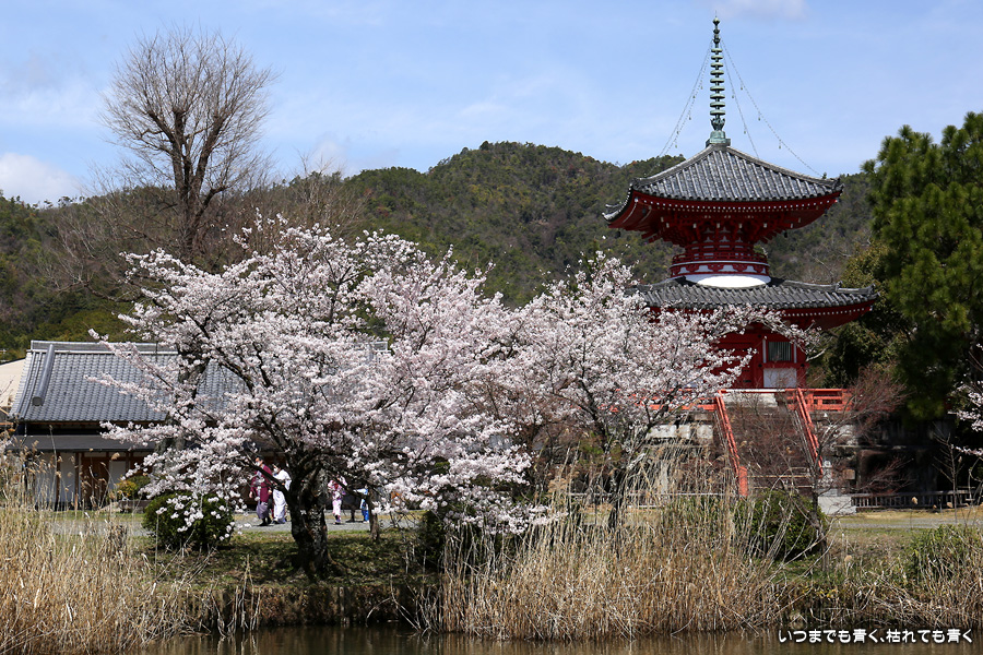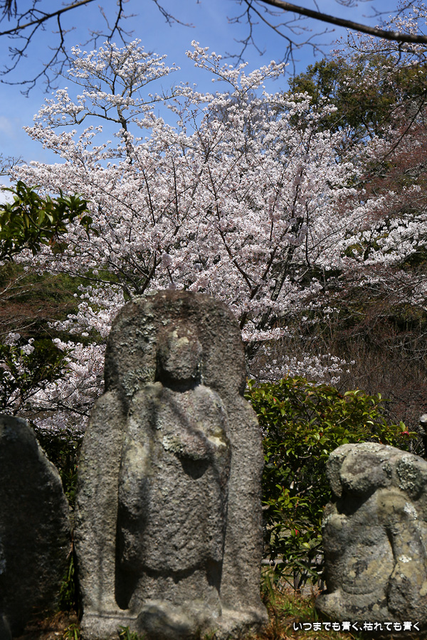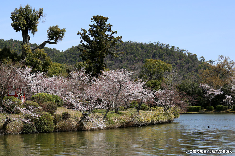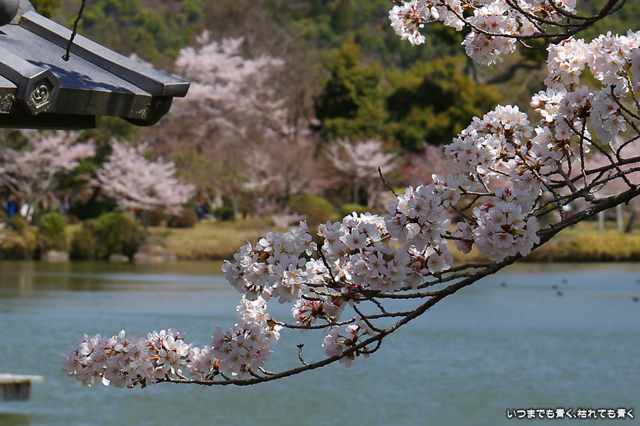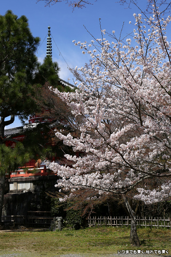 大覚寺は2015年の秋以来の参拝で、桜の季節は初めてとなります。今回はちょうど満開になろうとしている時で、お寺の方の説明によると、今が一番の見ごろだということでした。大沢池は時代劇では必ず出てくるロケ地で、ロケ地好きな私としては見覚えのある景色があって、その場面を思い起こしながら楽しく見てしまいました。心経宝塔と桜の構図はありきたりですが、やはり絵になるので場所を変えながら何枚も撮ってしまいまいました。桜にはやはり青い空が似合います。大覚寺でこの桜を見ることができただけで、今回の京都ぶらり旅の満足度100%です。
